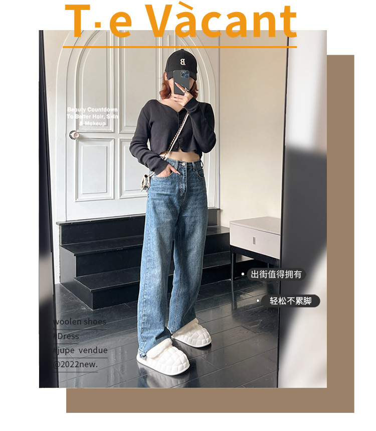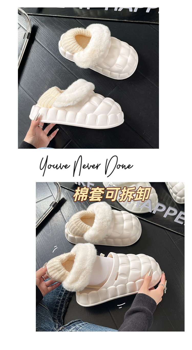 日常外穿简约时尚保暖厚底棉拖鞋秋冬季新款居家舒适百搭毛绒拖鞋