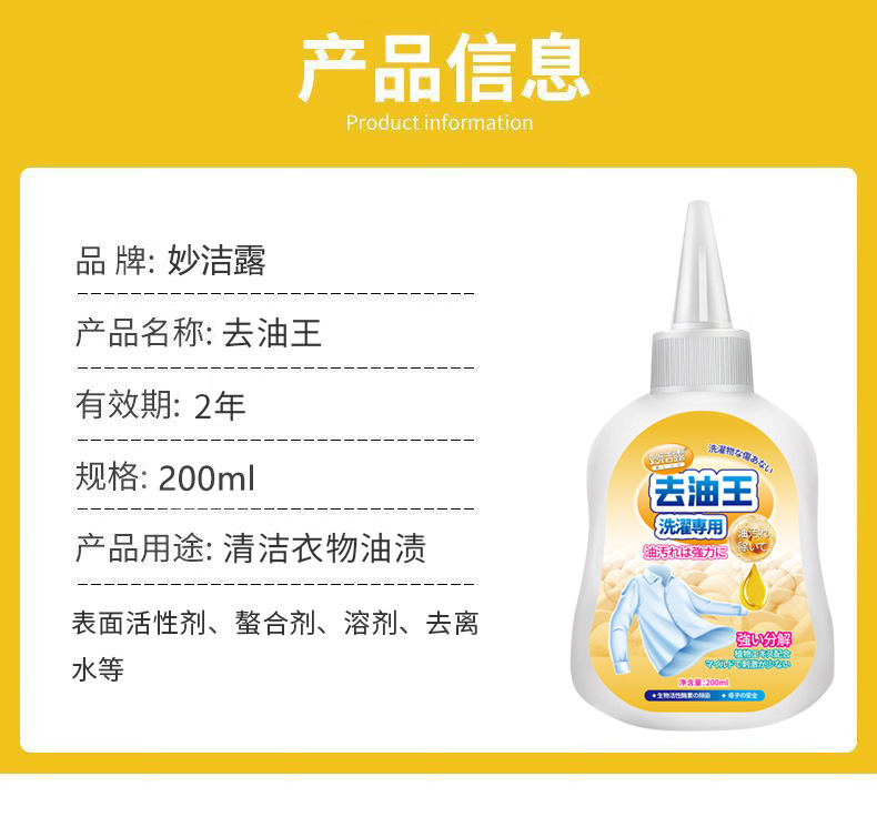 色の分類 Miaojie Dew-衣類脱脂剤 200ml