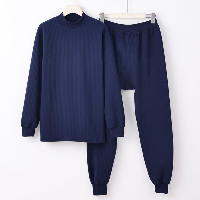 中老年内衣秋冬加厚三层保暖男圆领宽松纯棉爸爸秋衣秋裤防寒套装