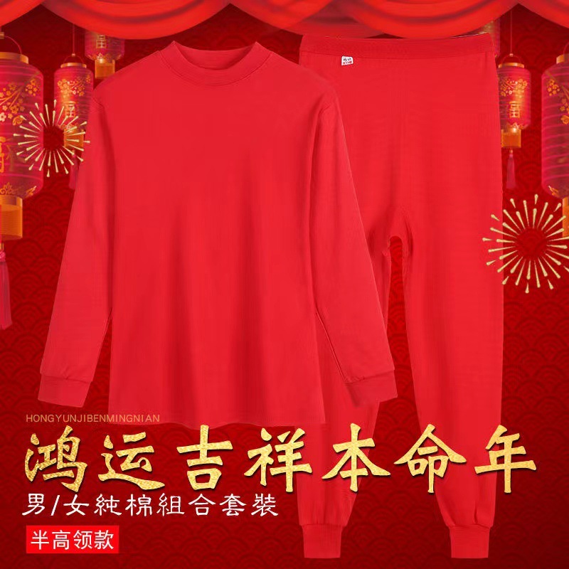 本命年男性赤セット純綿快適女性大赤色秋衣秋ズボン下着新年保温下着