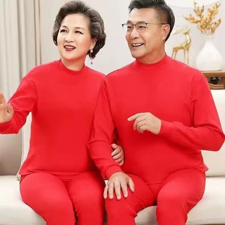 本命年紅セット純綿中高年ビッグサイズ男性女性赤い秋衣秋ズボン下着父母服