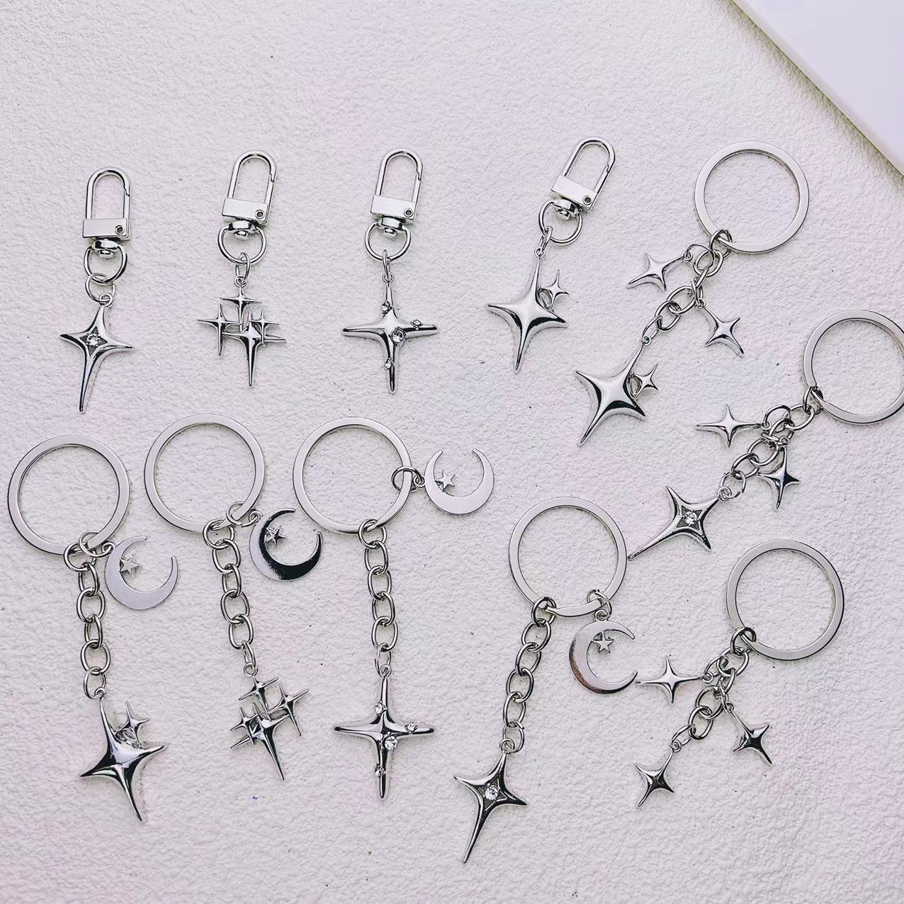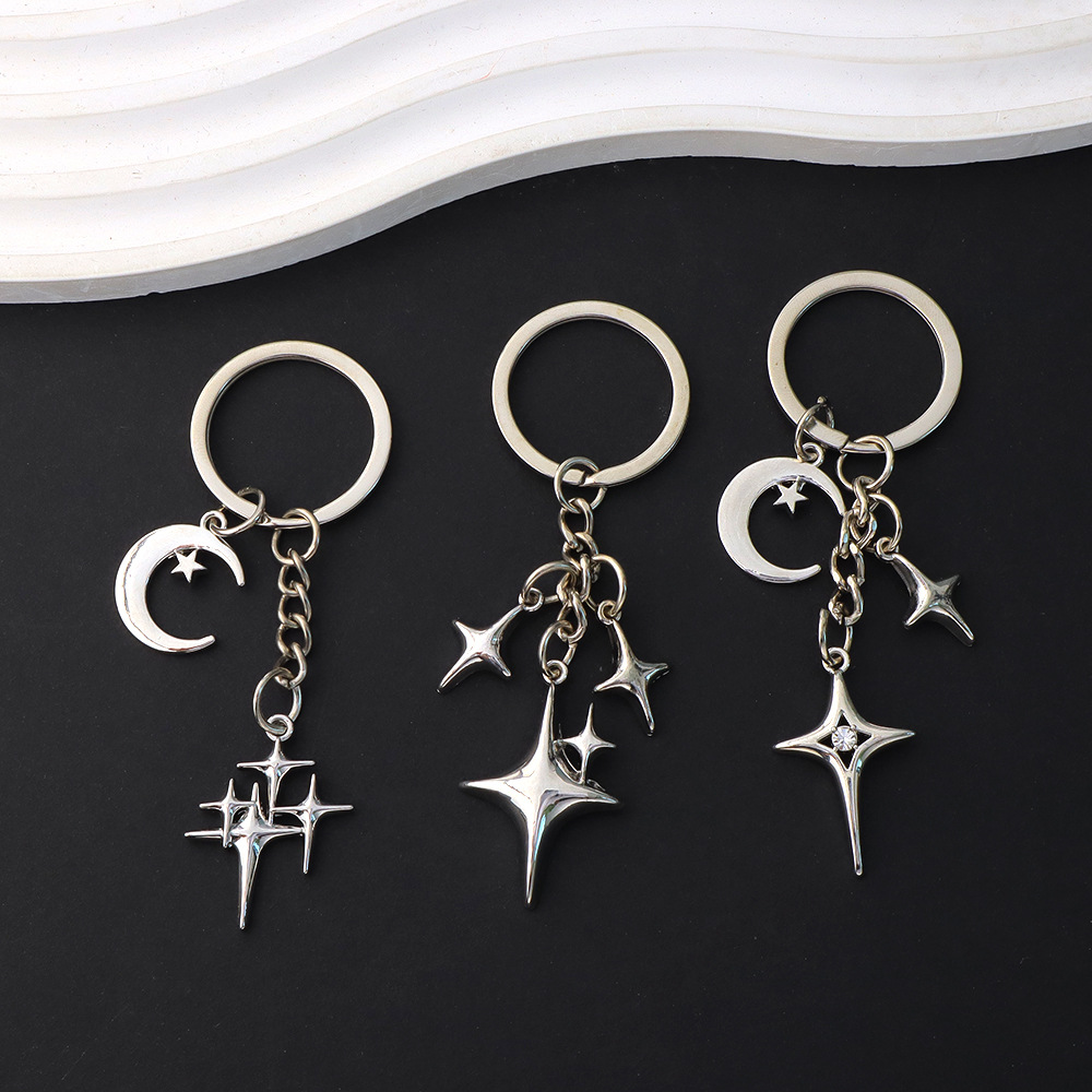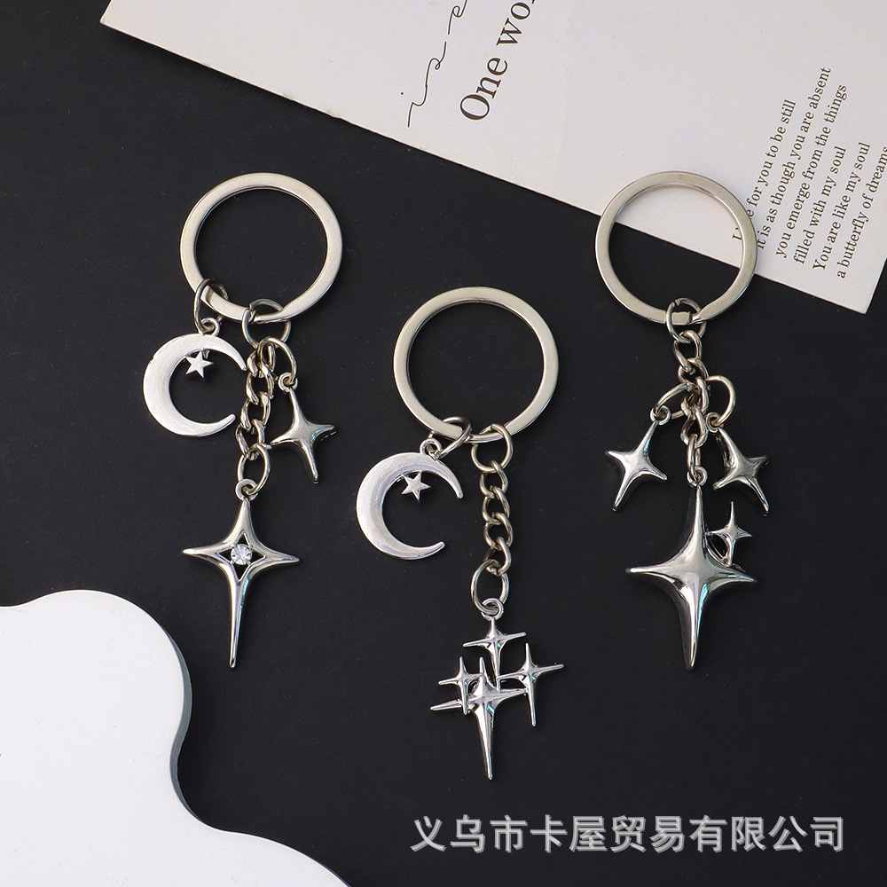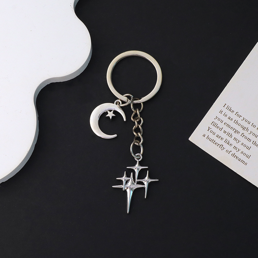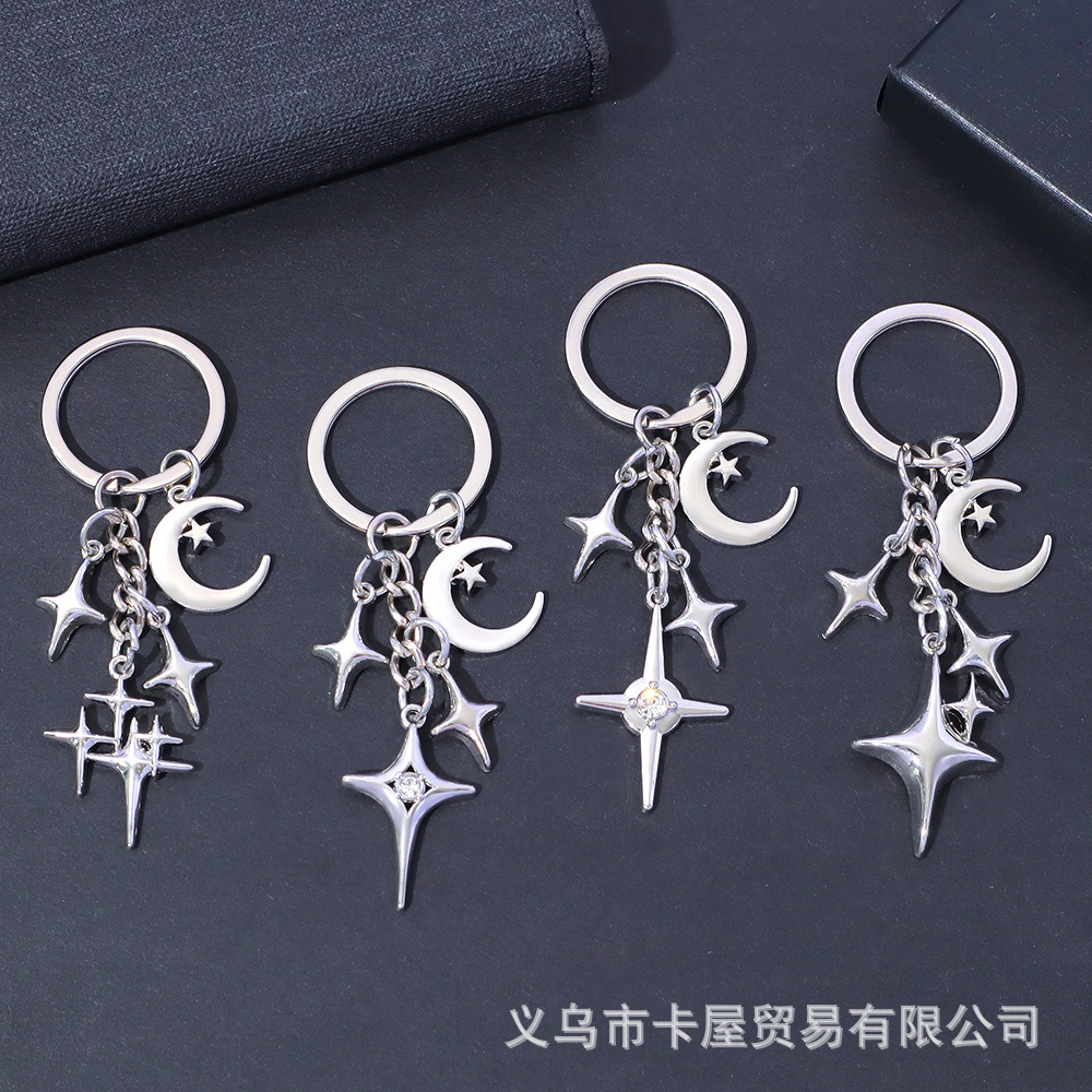 国境を越えた人気の四芒星クロススタームーンキーホルダーファッショナブルでシンプルなバッグ装飾ペンダントAmazon