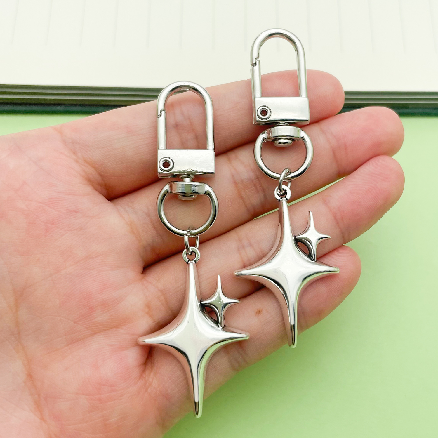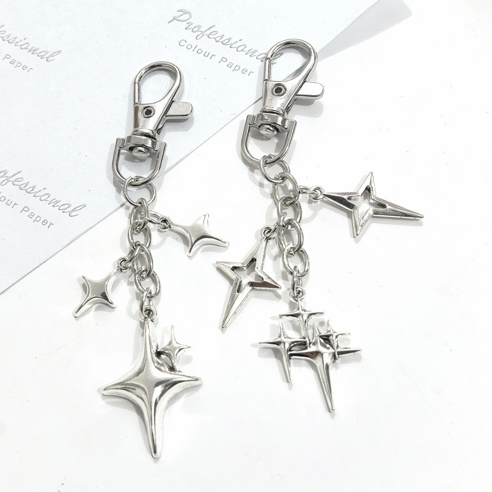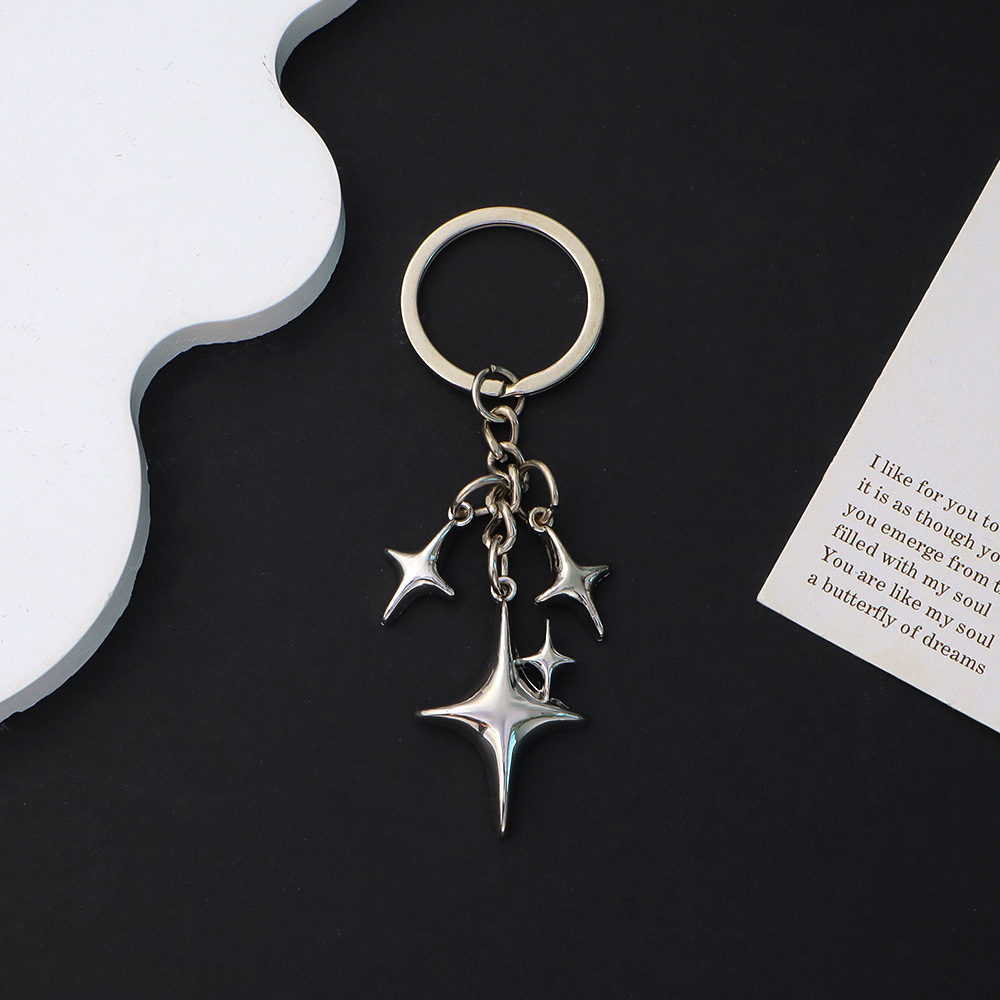 跨境外贸创意四芒星钥匙扣挂件ins手机包包星星钥匙链配饰品挂饰