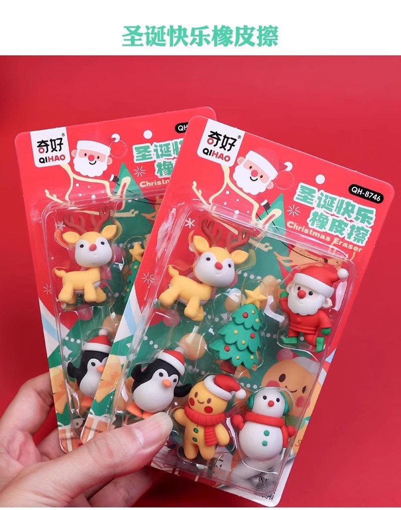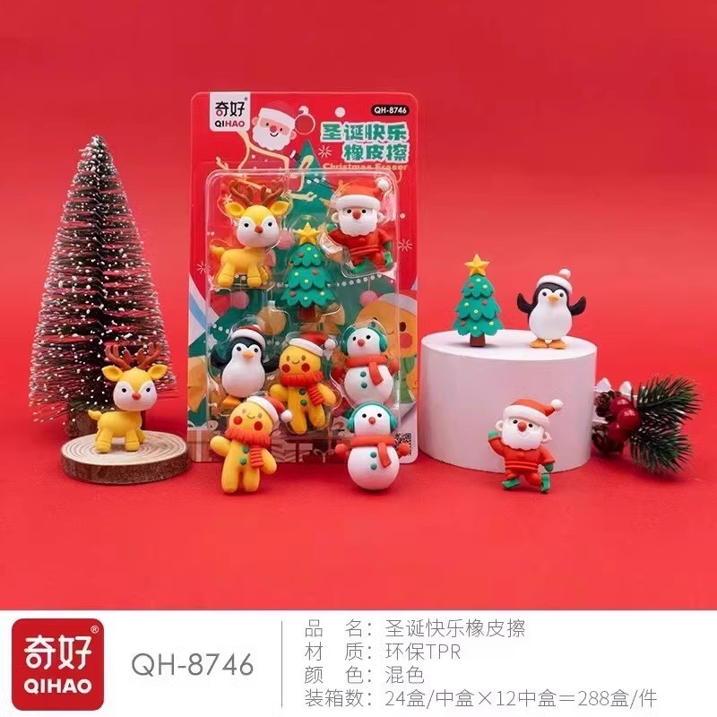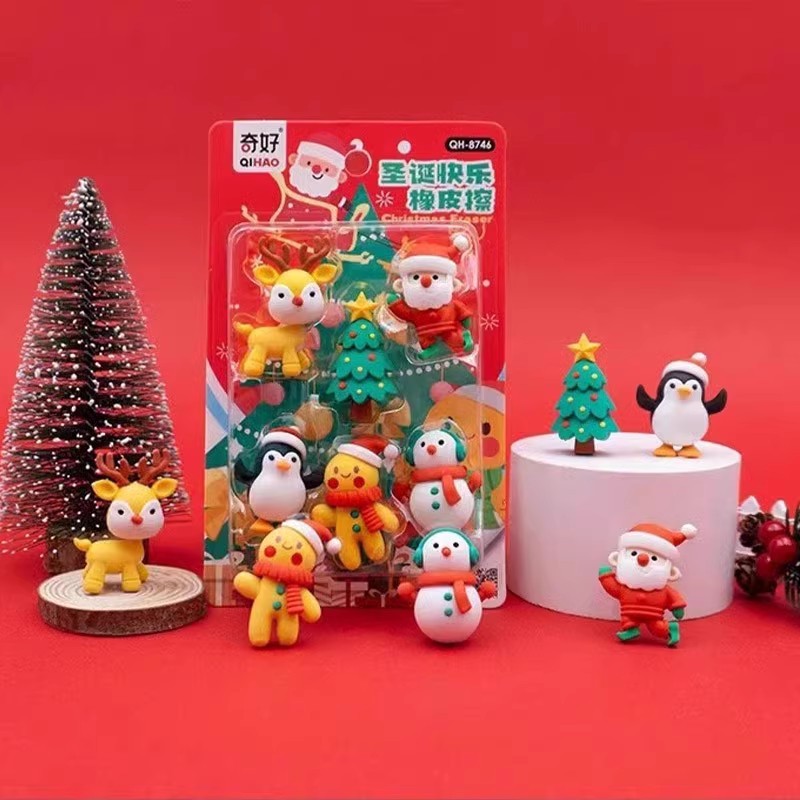 奇好8746サンタクロース消しゴム3D立体組み立てヘラジカクリスマスツリー雪だるまペンギン消しゴム