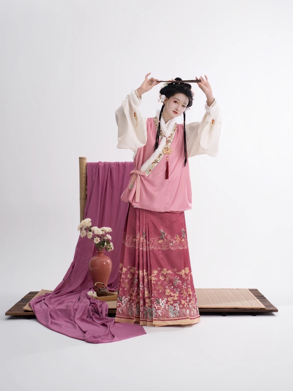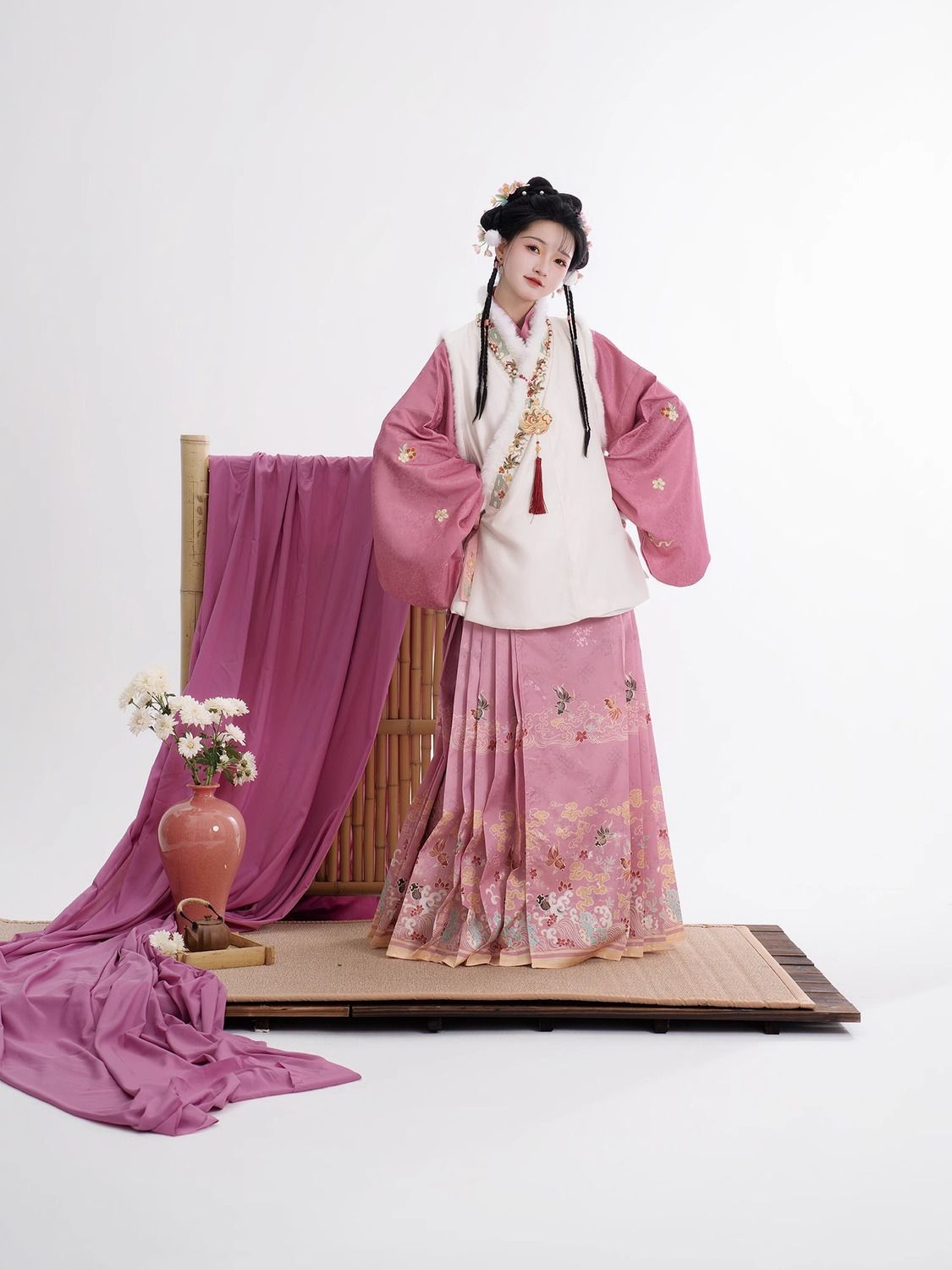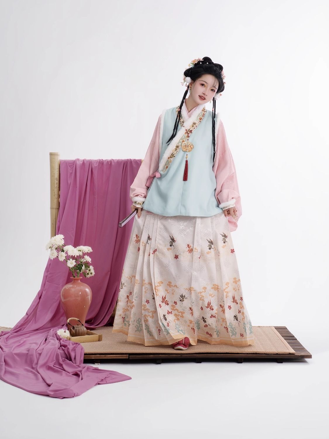 花朝记【盈瓷】明制立领琵琶袖对襟袄加绒比甲原创马面裙秋冬套装