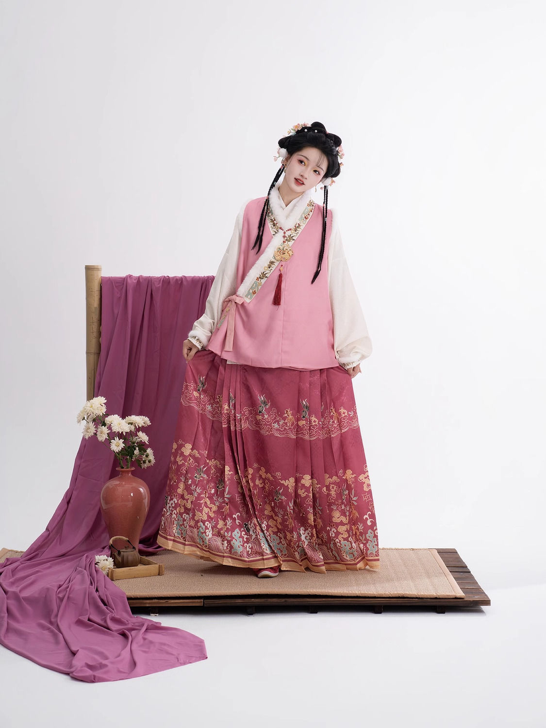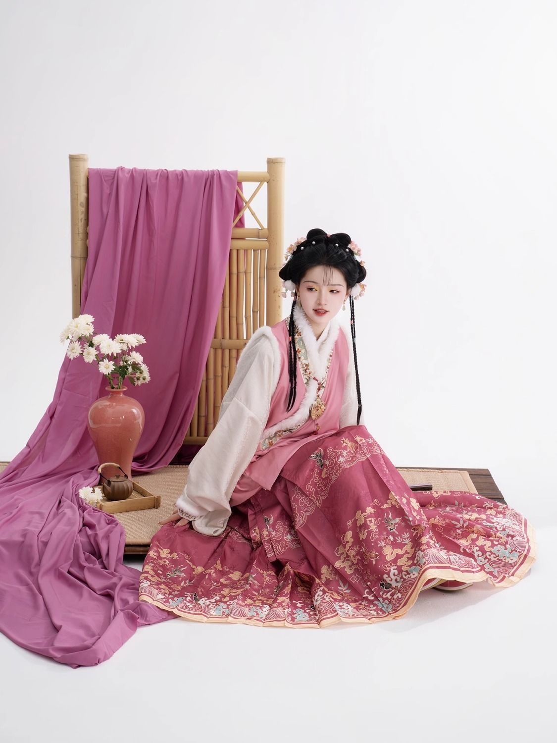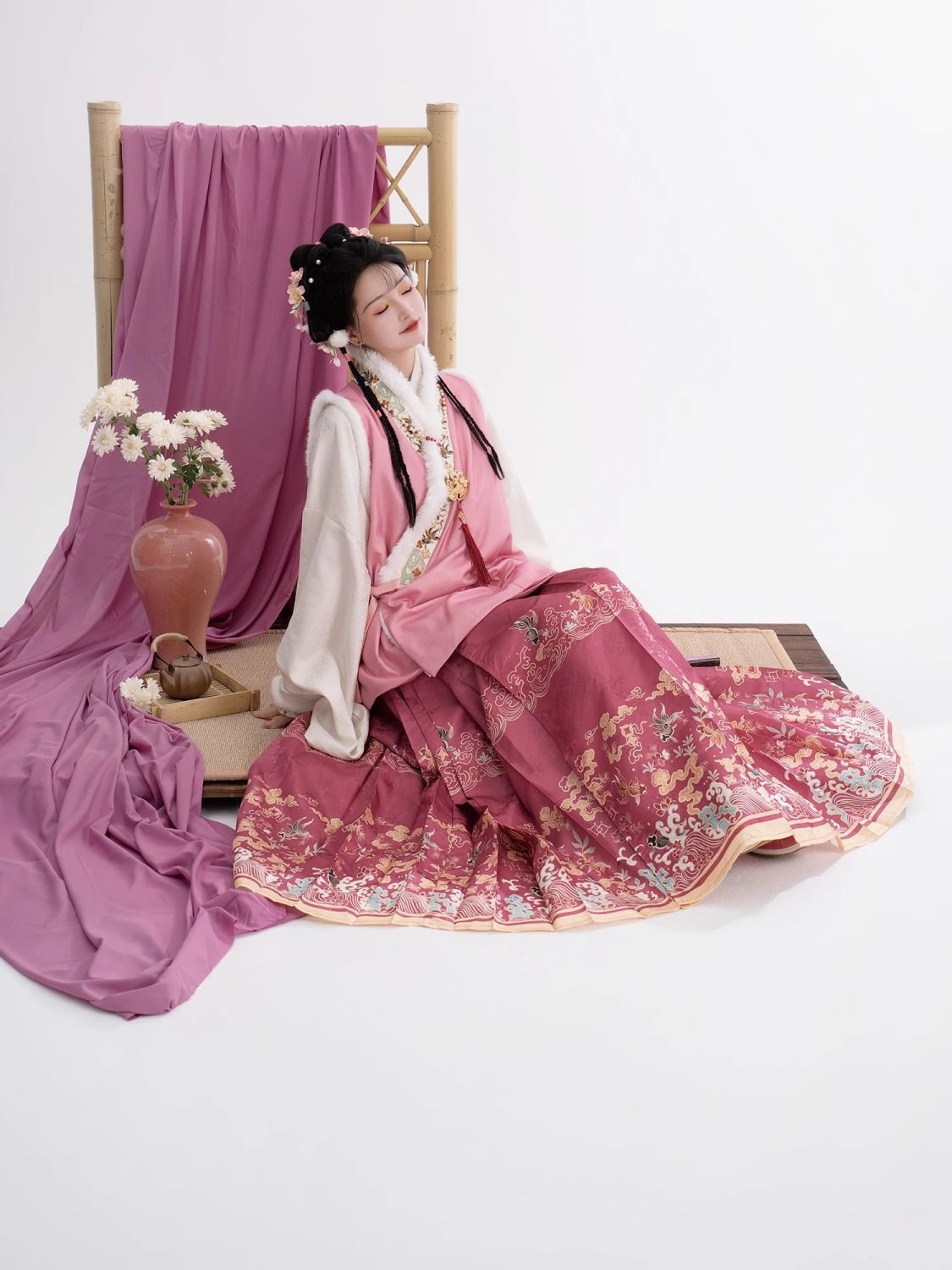花朝记【盈瓷】明制立领琵琶袖对襟袄加绒比甲原创马面裙秋冬套装