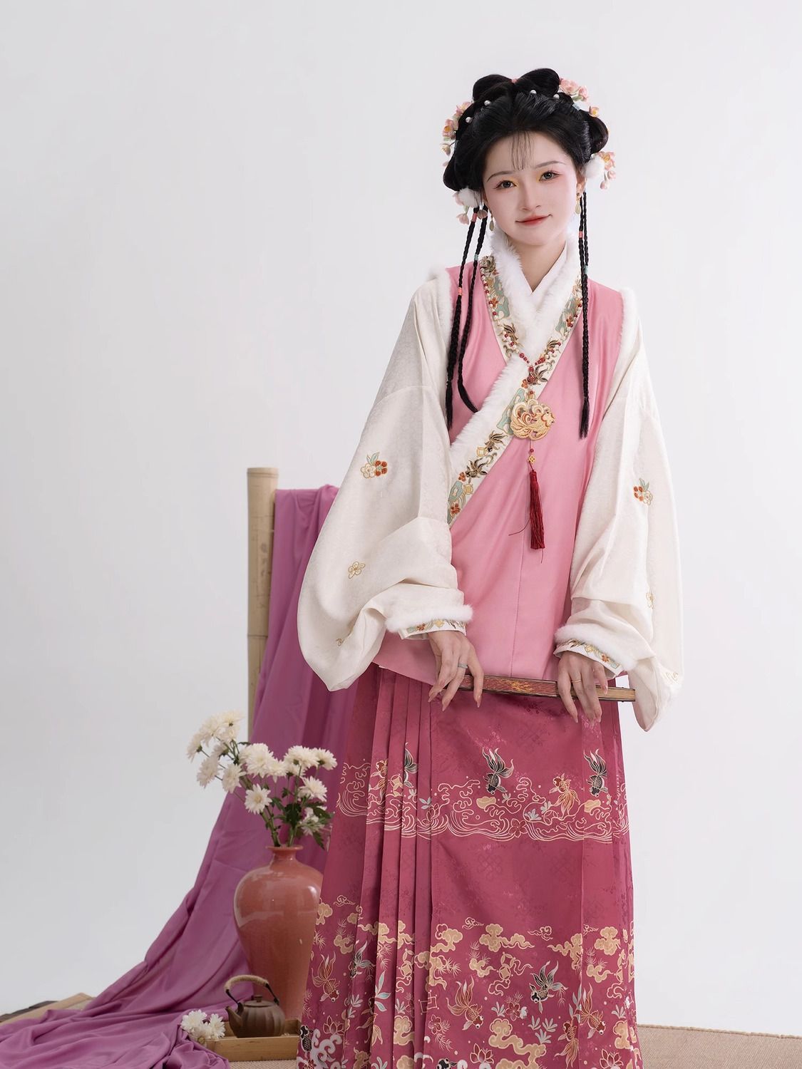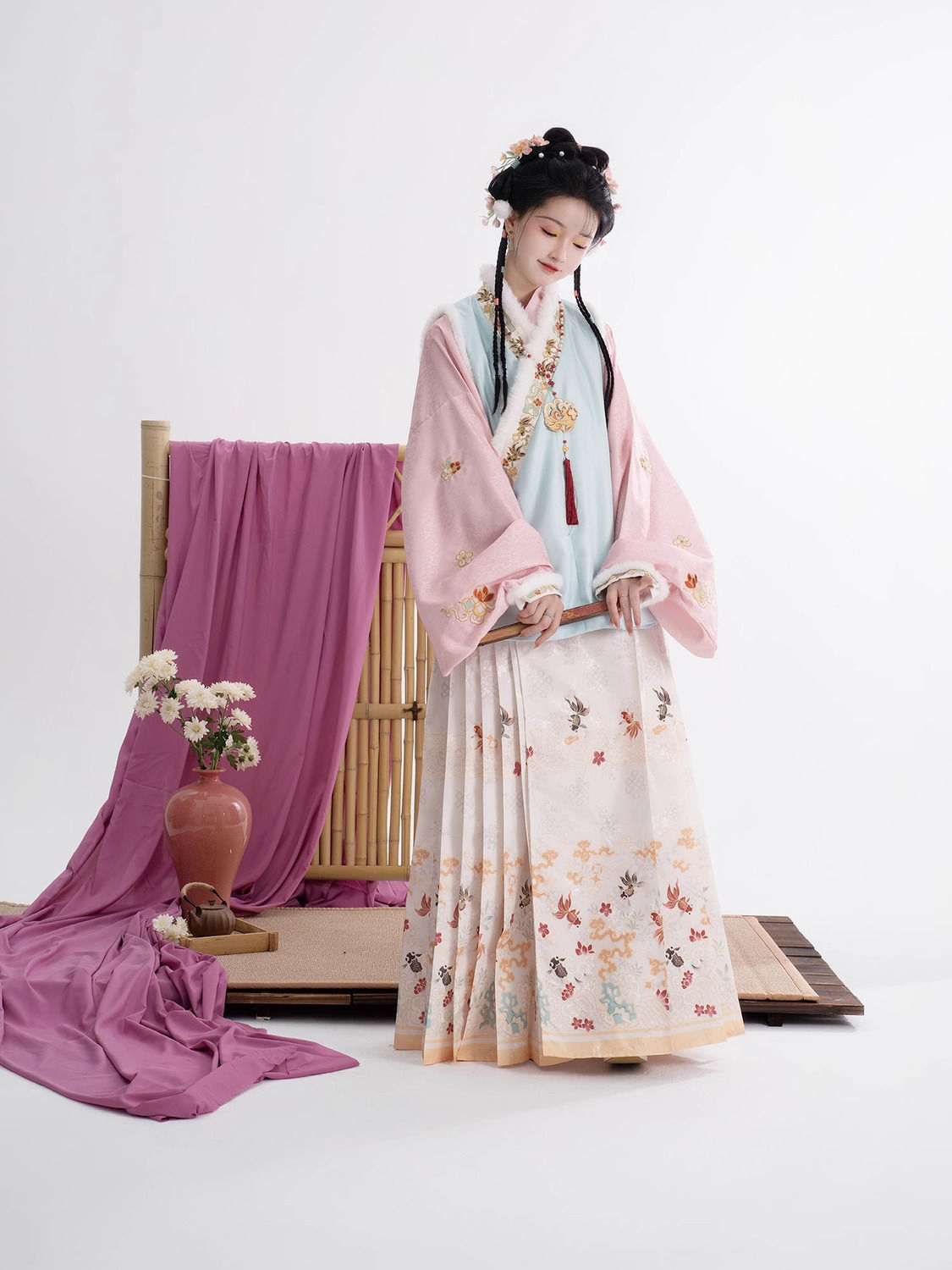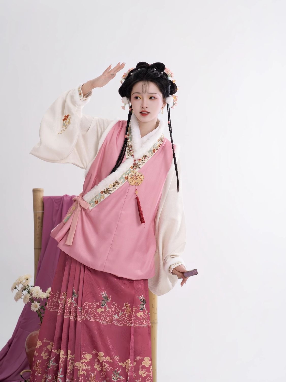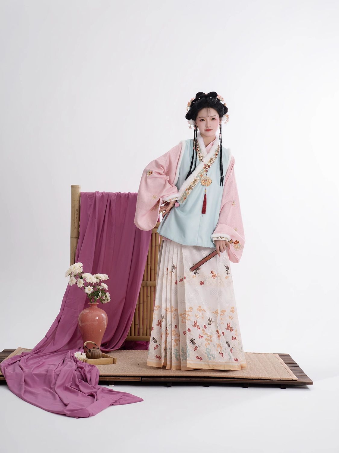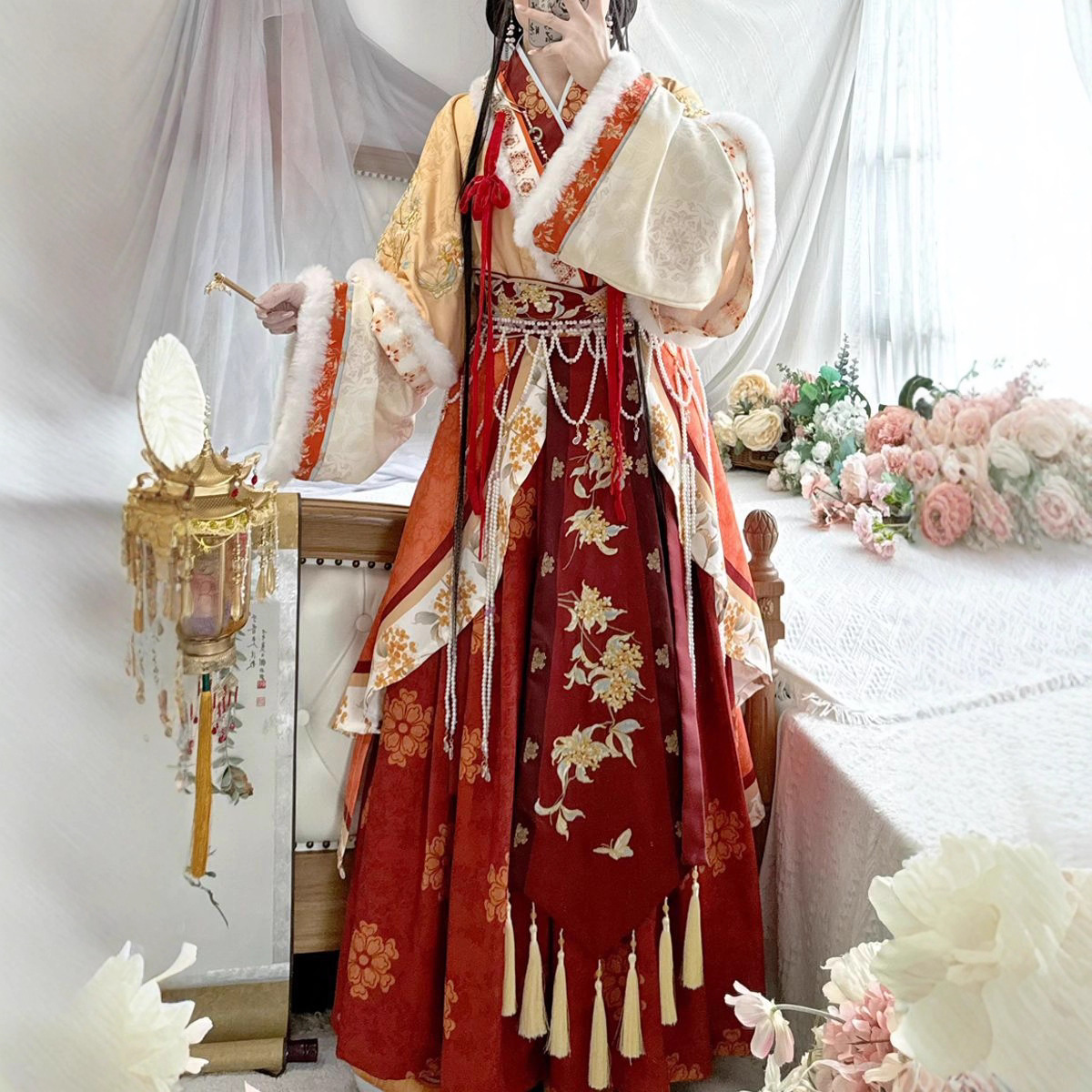 秋冬金明製加毛保温漢服交襟短衣比甲加毛馬面スカートセット古装超仙漢服