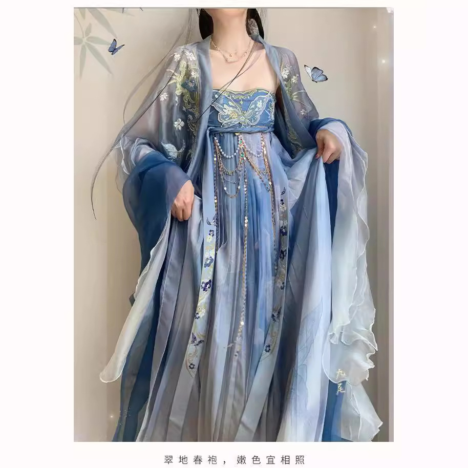 夏唐製重工刺繍漢服超仙斉胸ホーテスカート大袖シャツ古着セット成人網紗漢服