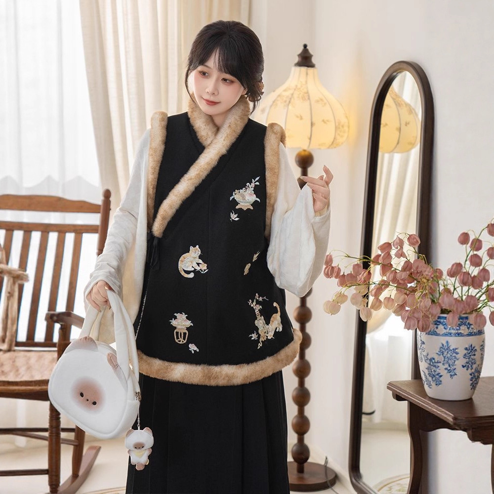 新款冬季汉服三件套马甲马面裙秋冬款套装原创改良中国风明制汉服