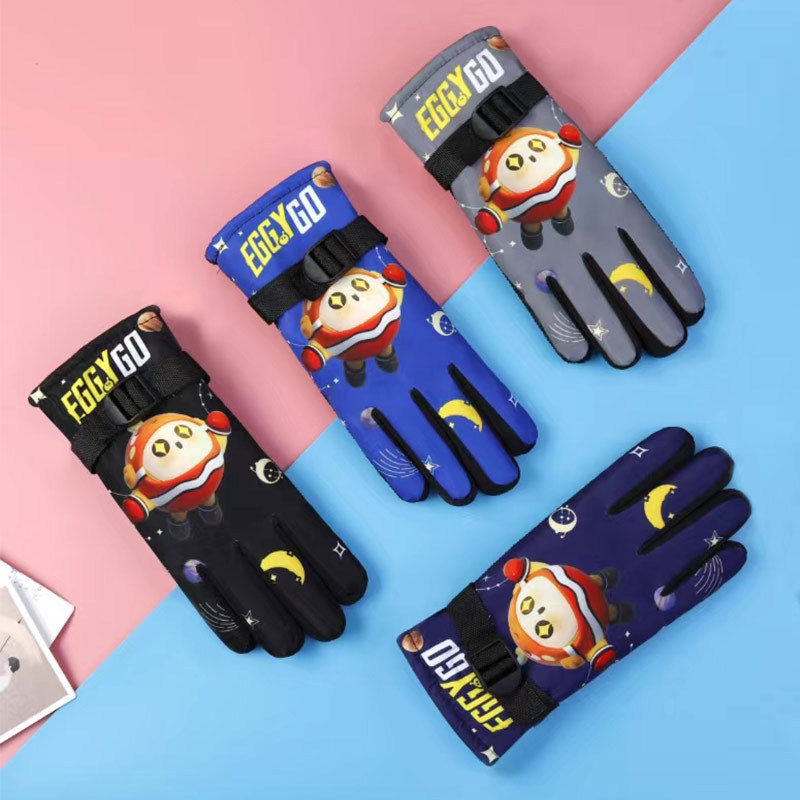 冬用子供用スキー用裏起毛手袋、屋外防風、雪遊び、厚手、男女学生用、サイクリング、防水、漫画柄