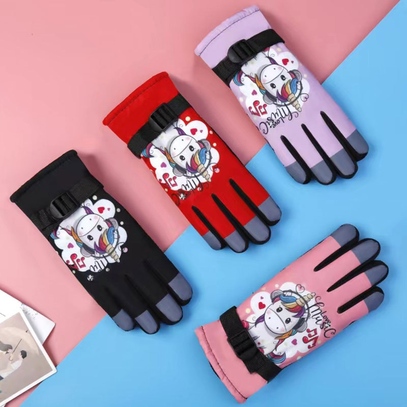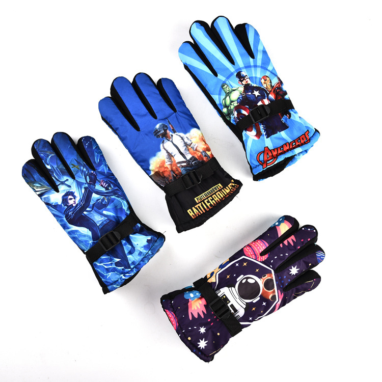 漫画スキー保温手袋子供冬の男女児童学生は防風保温手袋を厚くする