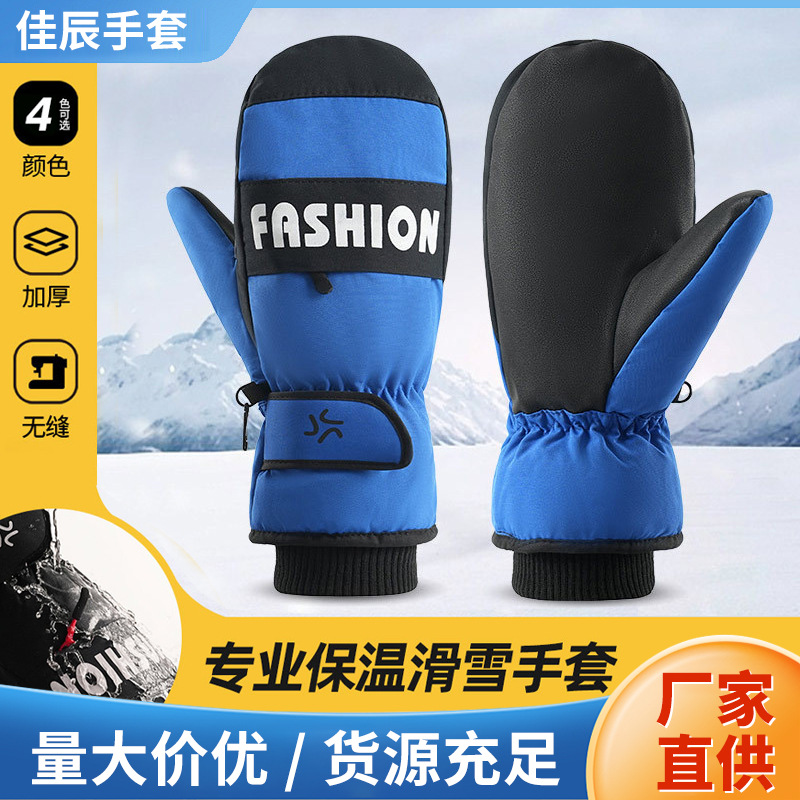 7-15岁儿童保暖骑行滑雪手套冬季加绒加厚时尚百搭防寒男女通用