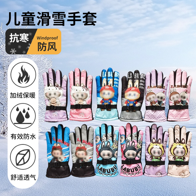 冬季儿童滑雪手套户外防风加绒加厚保暖卡通男女小孩子手套批发