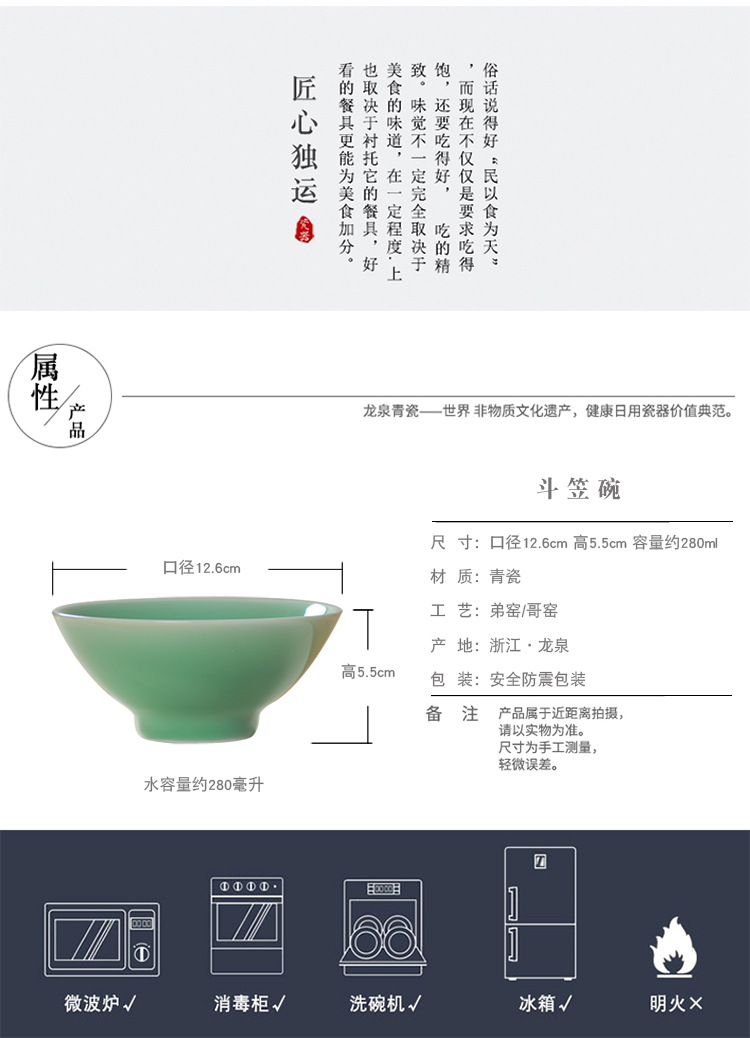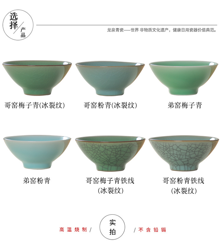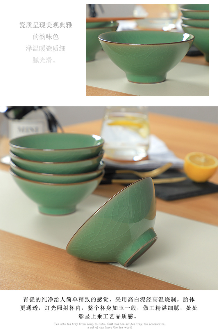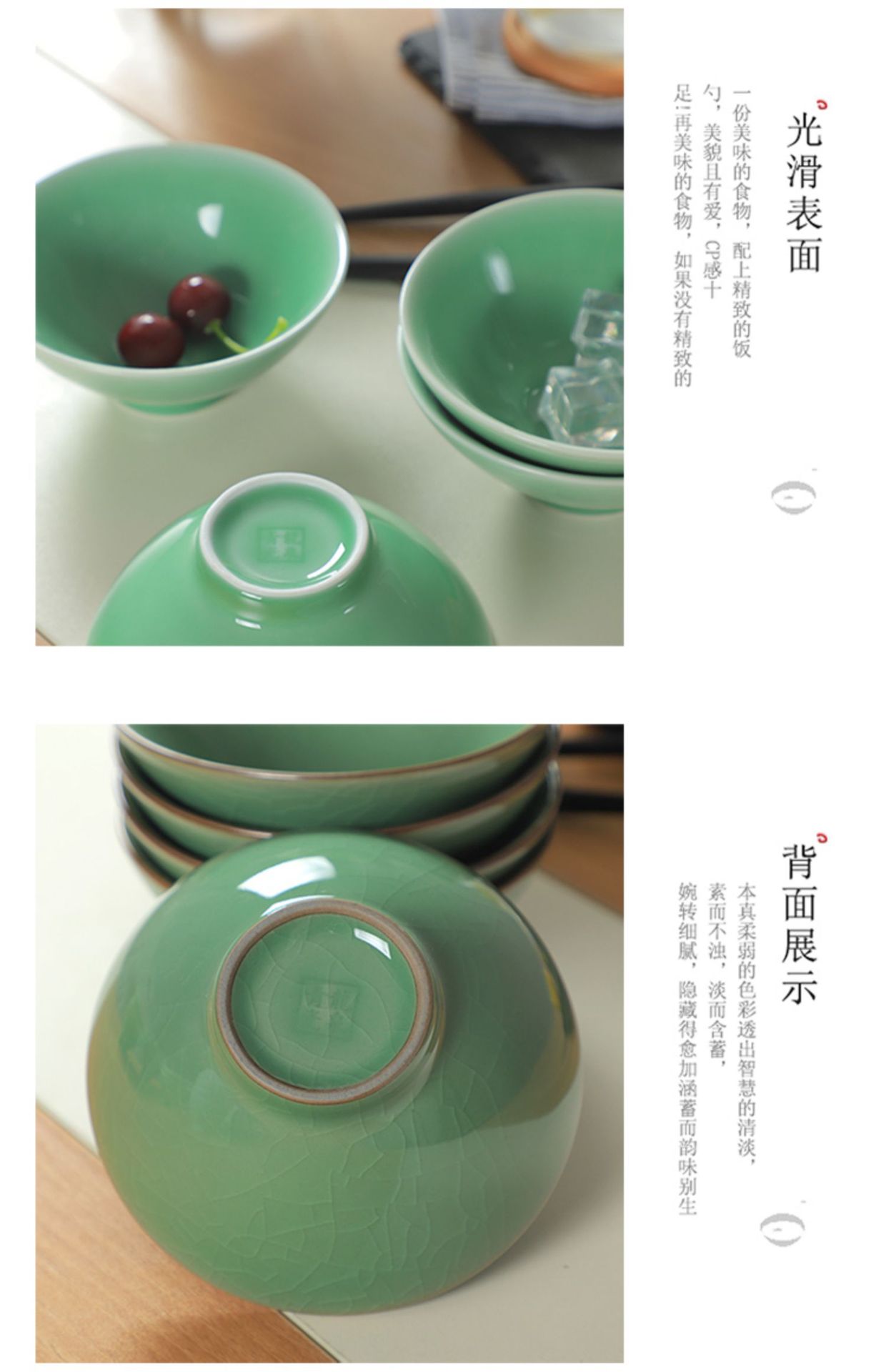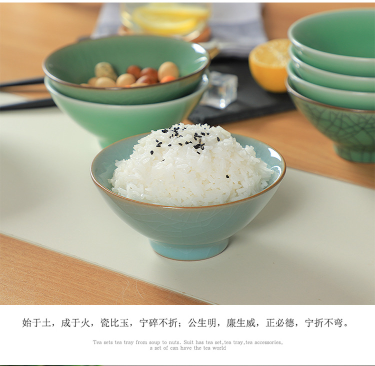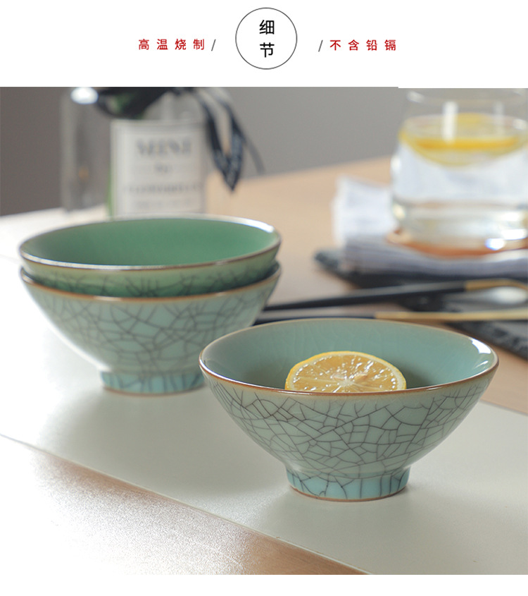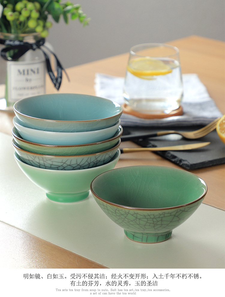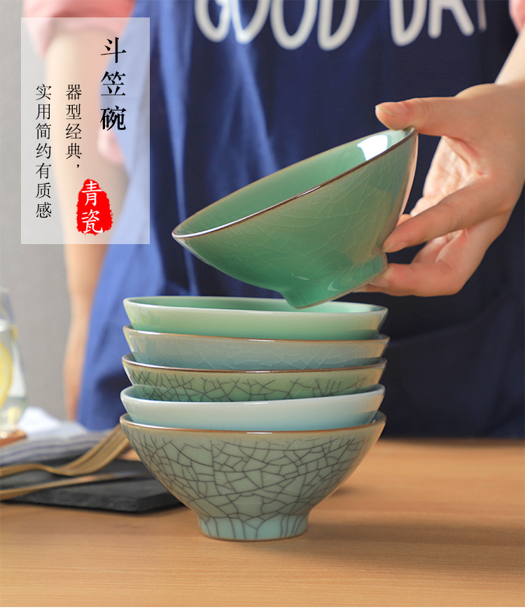 青磁の闘笠碗の家庭用陶磁器のご飯碗の中国式の小さい碗の酒碗の氷の割れ目の5インチの茶碗は精巧です。