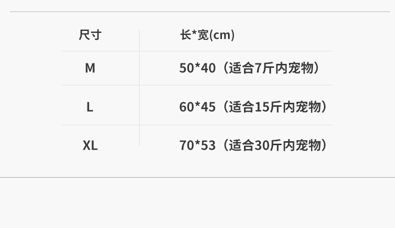 M:50*40cm ( 4kg ペット以内),L: 60*45cm (ペット 7.5kg 枚以内),XL: 70*53cm (ペット 15kg 枚以内)
