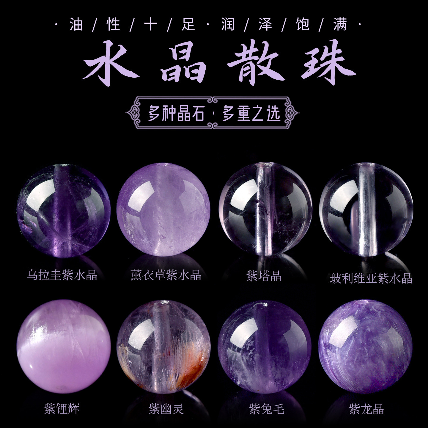 天然水晶散珠 玻利维亚紫单珠diy串珠子多宝配珠圆珠配饰手工配件