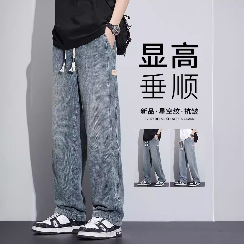 星空柄ジーンズメンズ2025春新作ワイドレッグトレンドブランドアメリカン春秋カジュアルルーズストレートパンツトレンド