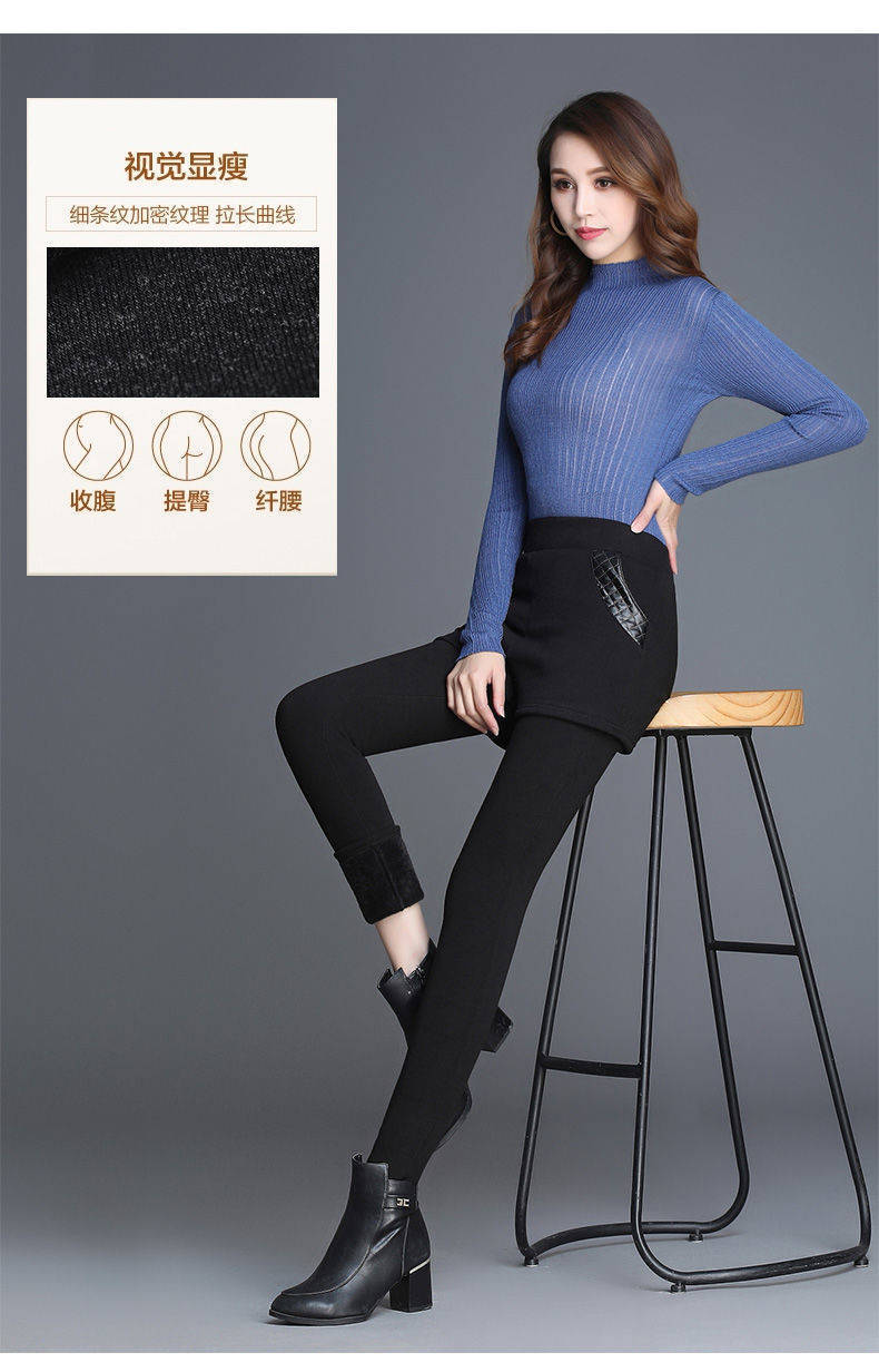 ベルベットの厚い偽の2つのレギンスのスカートの女性は腰を緩めてやせている足の女性のズボンの腰が高くて尻のスカートの冬を包みます。