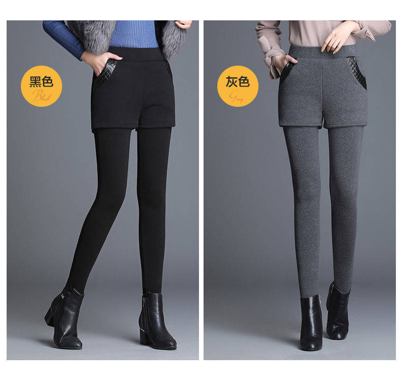 ファッションの外に偽の2枚の2023秋冬のベルベットのレギンスの女性の土はやせたすねの鉛筆の厚い半ズボンの女性を現します。