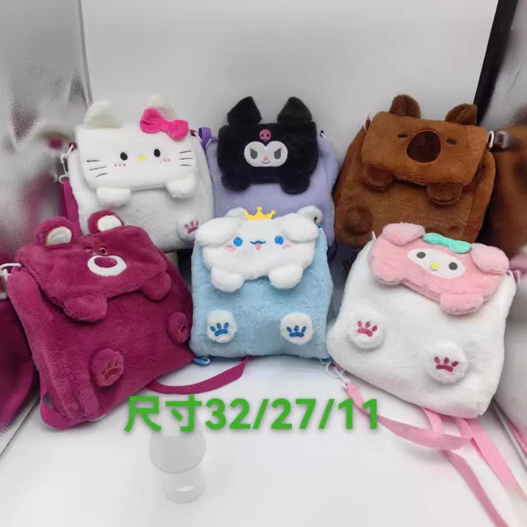 海外貿易向けサンリオキャラクターぬいぐるみバッグ、キュートなクロミの斜め掛けバッグ、子供用多用途カピバラ小銭入れ、女性用