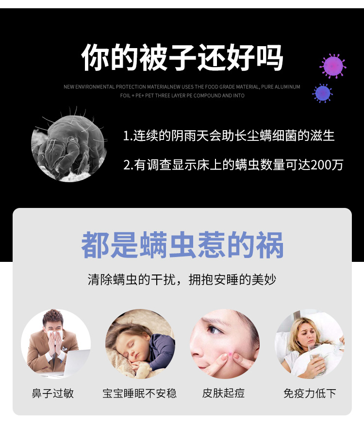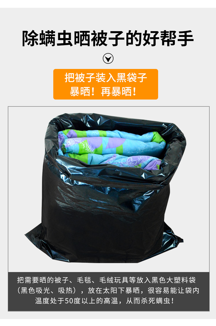 大きいサイズの黒いビニール袋は布団を干してダニを取り除きます。