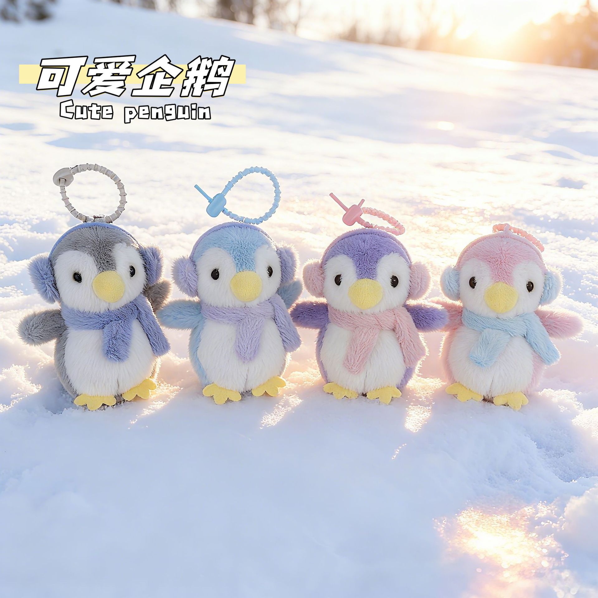 可爱耳机企鹅毛绒挂件卡通围脖企鹅玩具公仔包包挂饰玩偶布娃娃