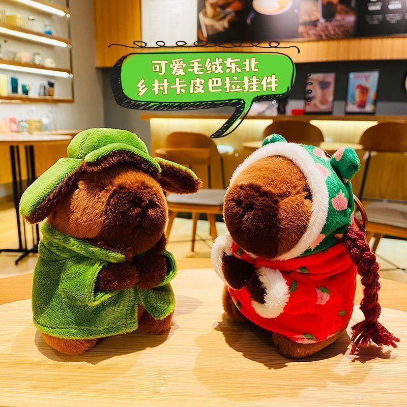 爆発的なカピバラ人形人形人形人形ストラップ東北軍コート花綿入れ上着カピバラモルモットバッグストラップ