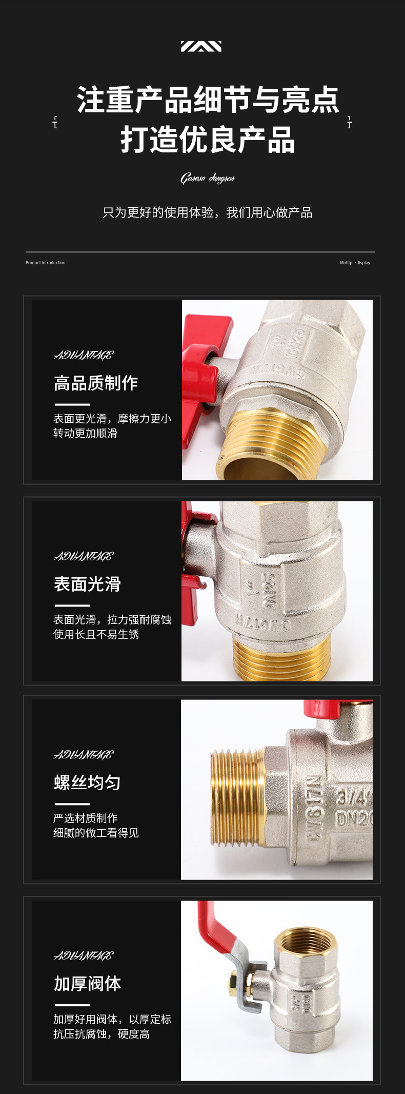 厚い内外糸黄銅ボール弁耐摩耗性耐摩耗性エアバルブメーカー直供外ねじ管路小バルブ