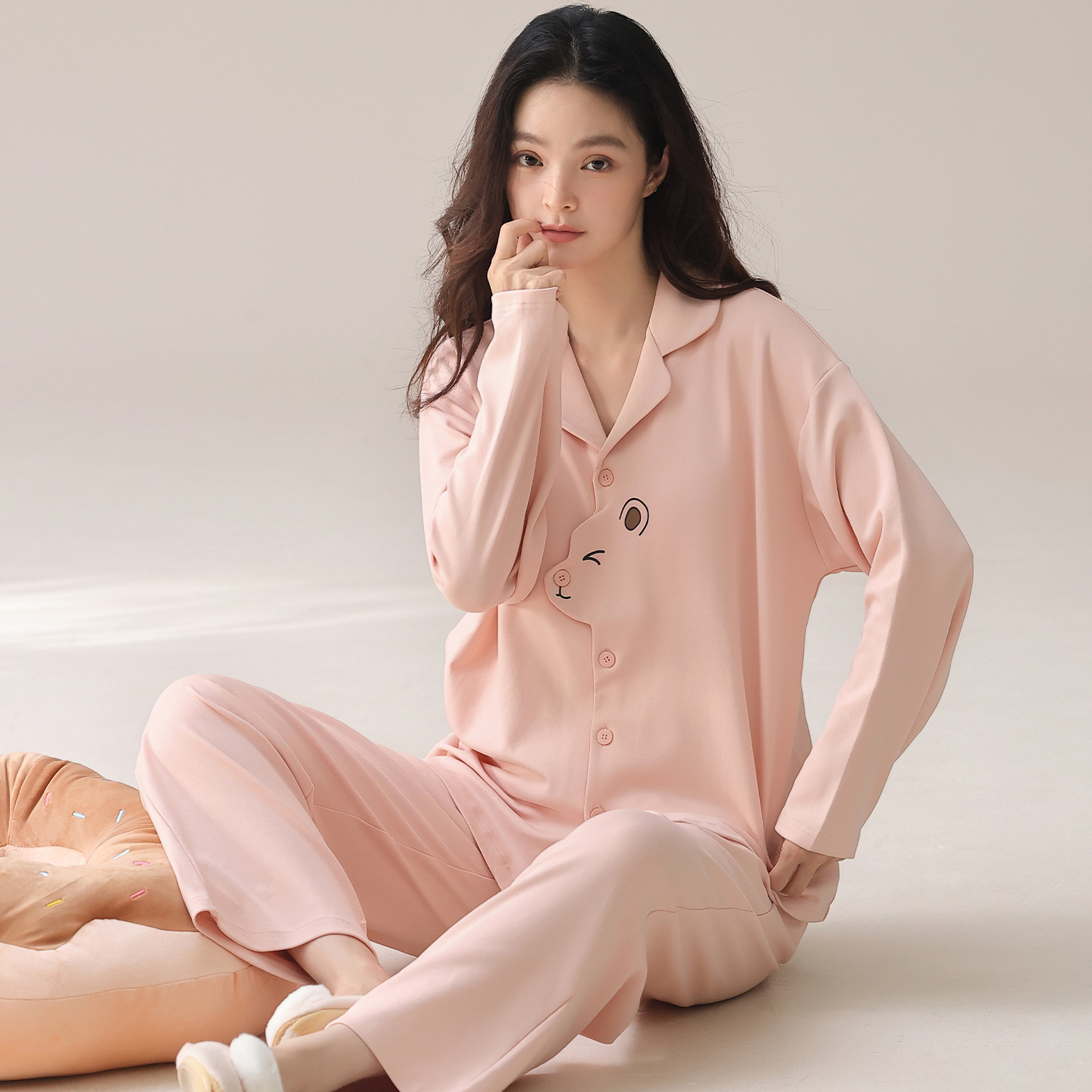 パジャマの女性春秋の純綿の長袖は外にゆったりとした大きいサイズのカーディガンを着ることができます。