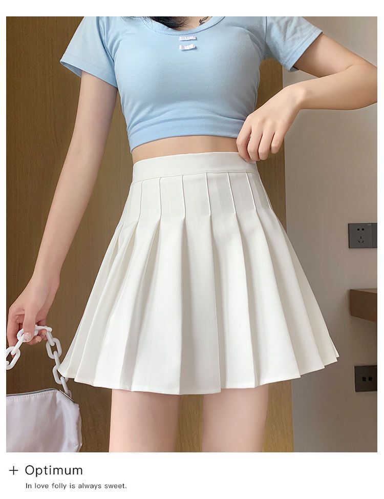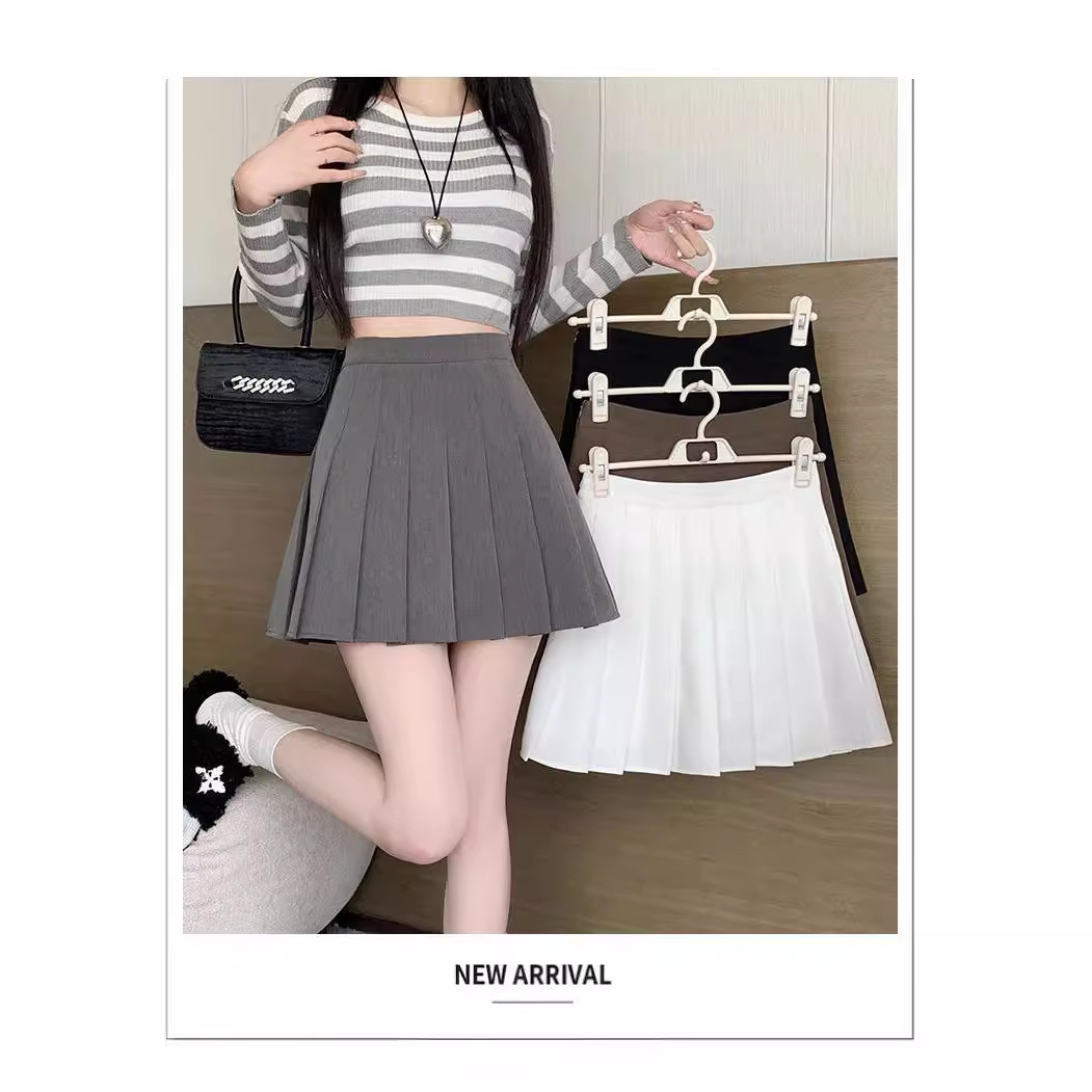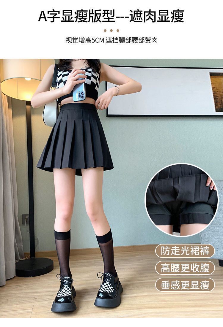 现货高腰百褶裙短裙女 秋季半身裙学院风韩版纯色防走光a字裙批发
