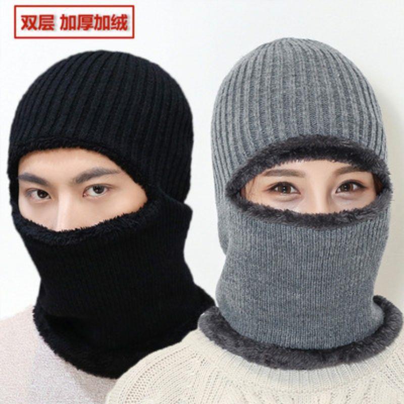 毛糸帽子男冬フード保温マスク自転車防風防寒顔マフラーマフラーマフラーマフラー一体綿帽子