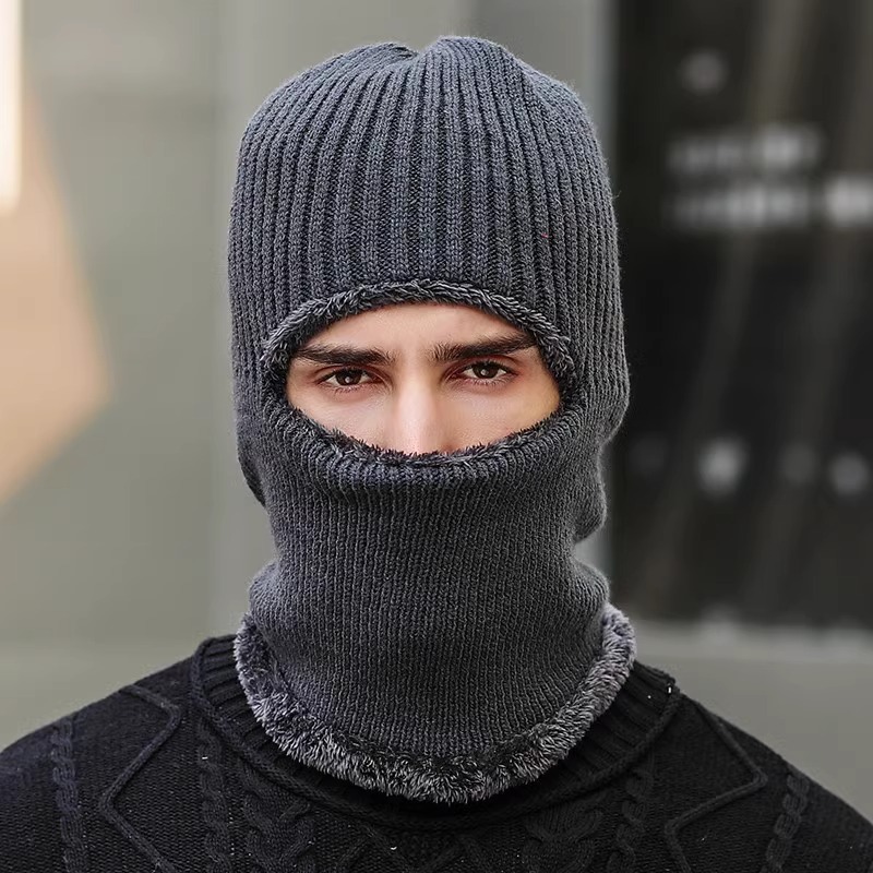 帽子男冬套头保暖加绒一体针织帽户外出行露眼蒙面防寒线帽