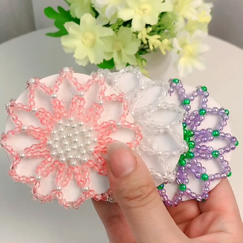 女の子の祝日のお祝いの赤い数珠の髪のネットの美しい手作りの水晶の玉のネットのポケットの甘い気質の団子の髪飾り