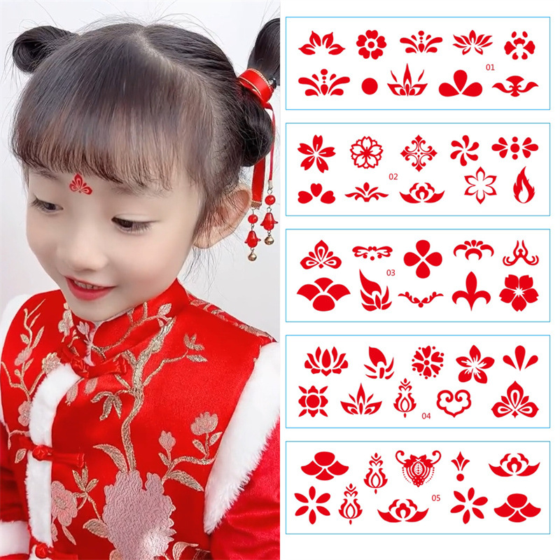 眉間に防水女性アンドロメダの子供たちが漢服花時代の古風な女の子の祝日の額にタトゥーを貼っている