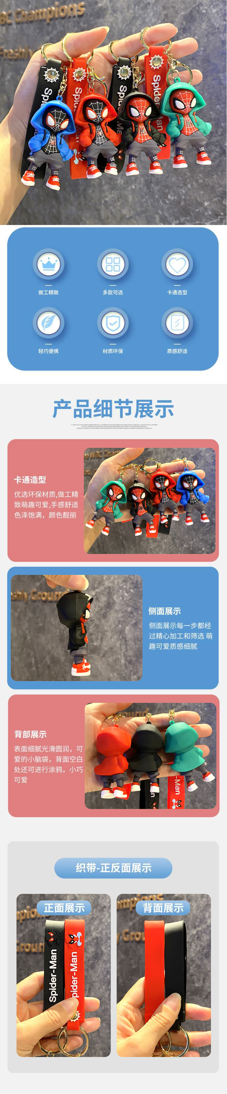 卡通潮酷漫威蜘蛛侠公仔钥匙扣挂饰汽车包包钥匙链挂件小礼品批发
