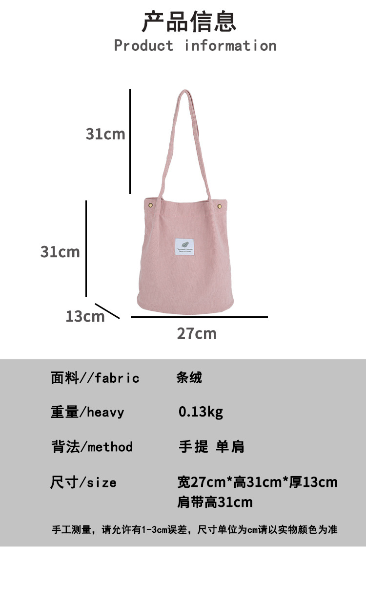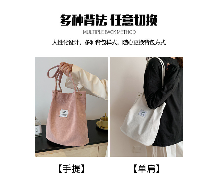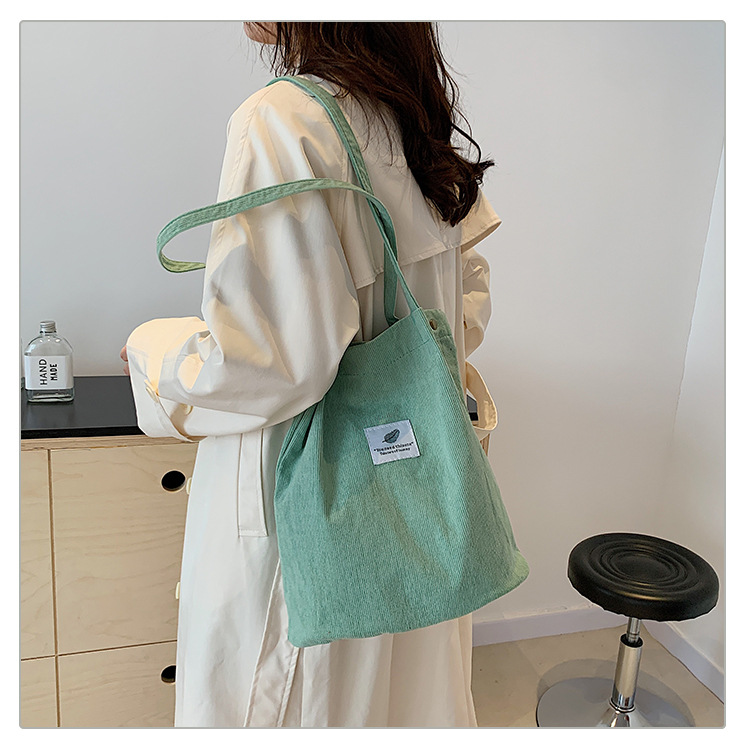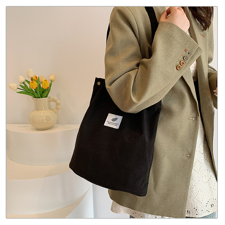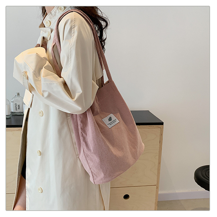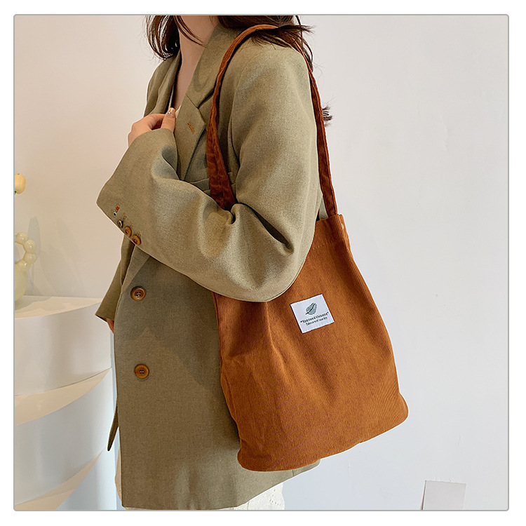 2025新型コーデュロイシングルショルダーバッグ女性韓国学生キャンバスバッグ大容量文芸シンプルなショッピングバッグ
