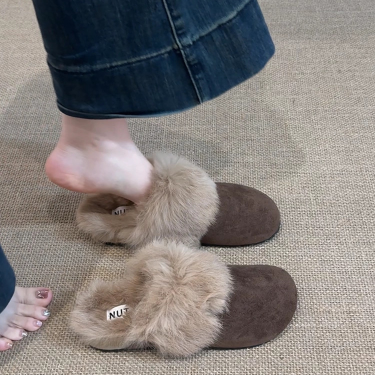 毛茸茸保暖通勤包头棉拖鞋简约复古百搭毛毛鞋女2025秋冬新款外穿