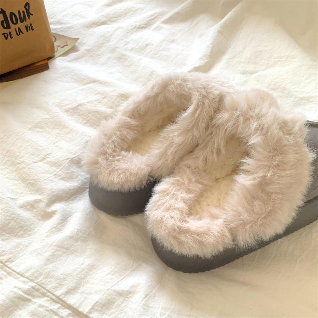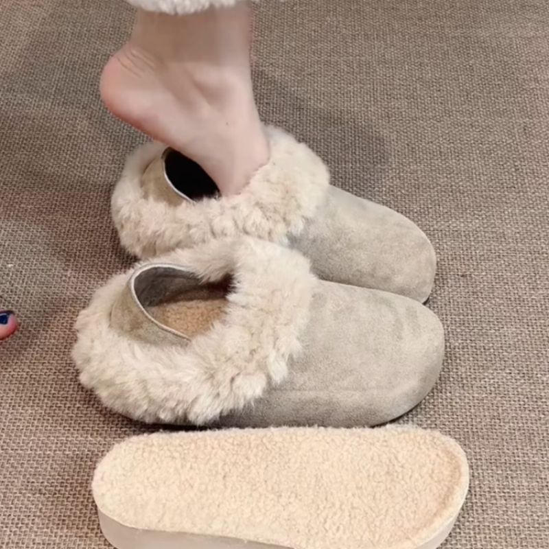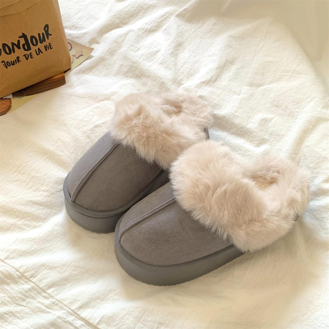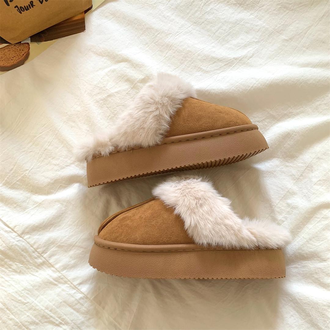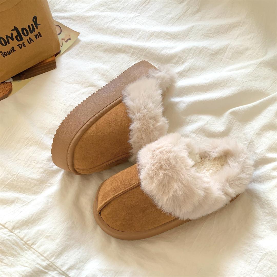 シンプルなファー一体型コットンスリッパ レディース 2025年冬新作 外履き 室内 厚底 スリッポン ファーサンダル レディース