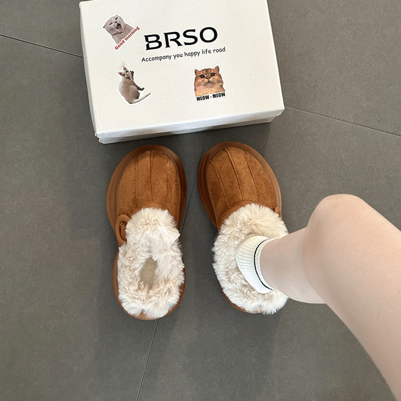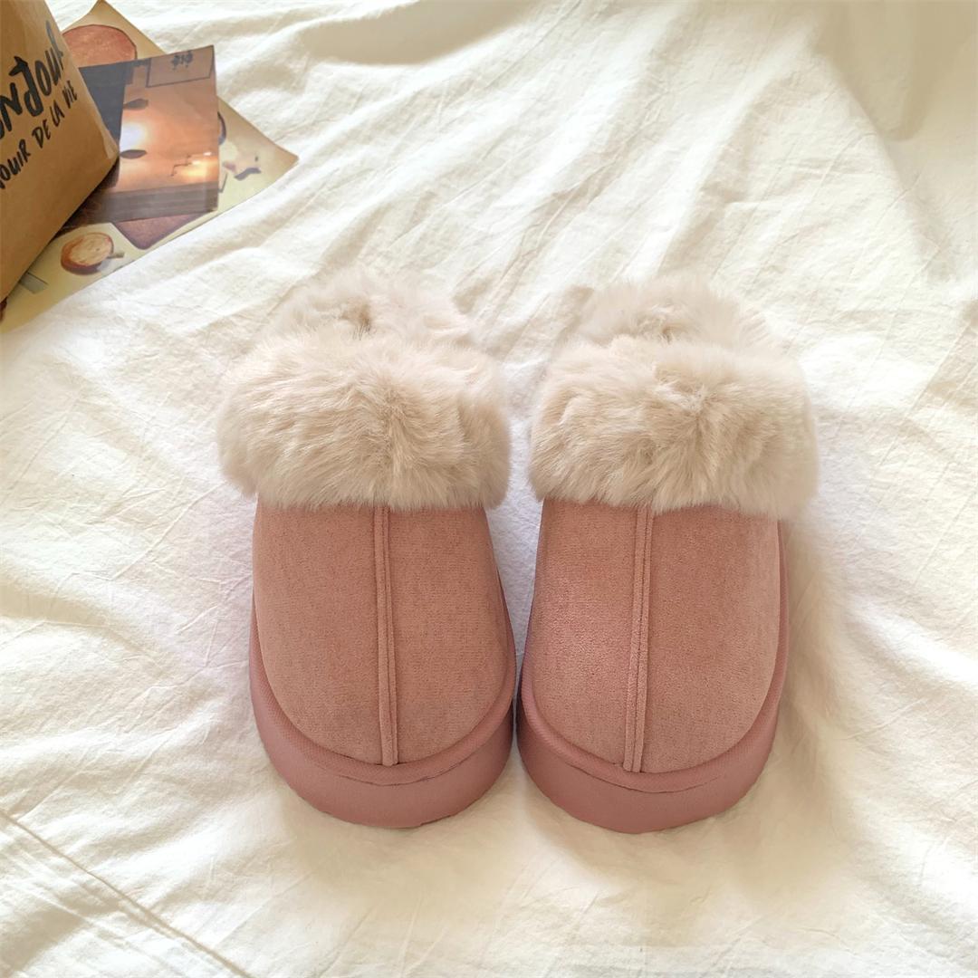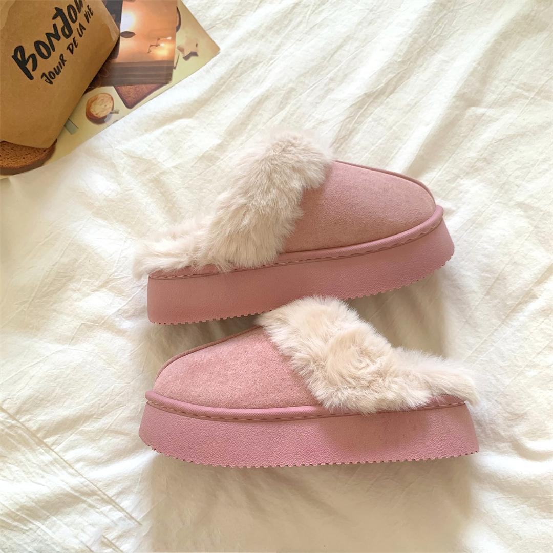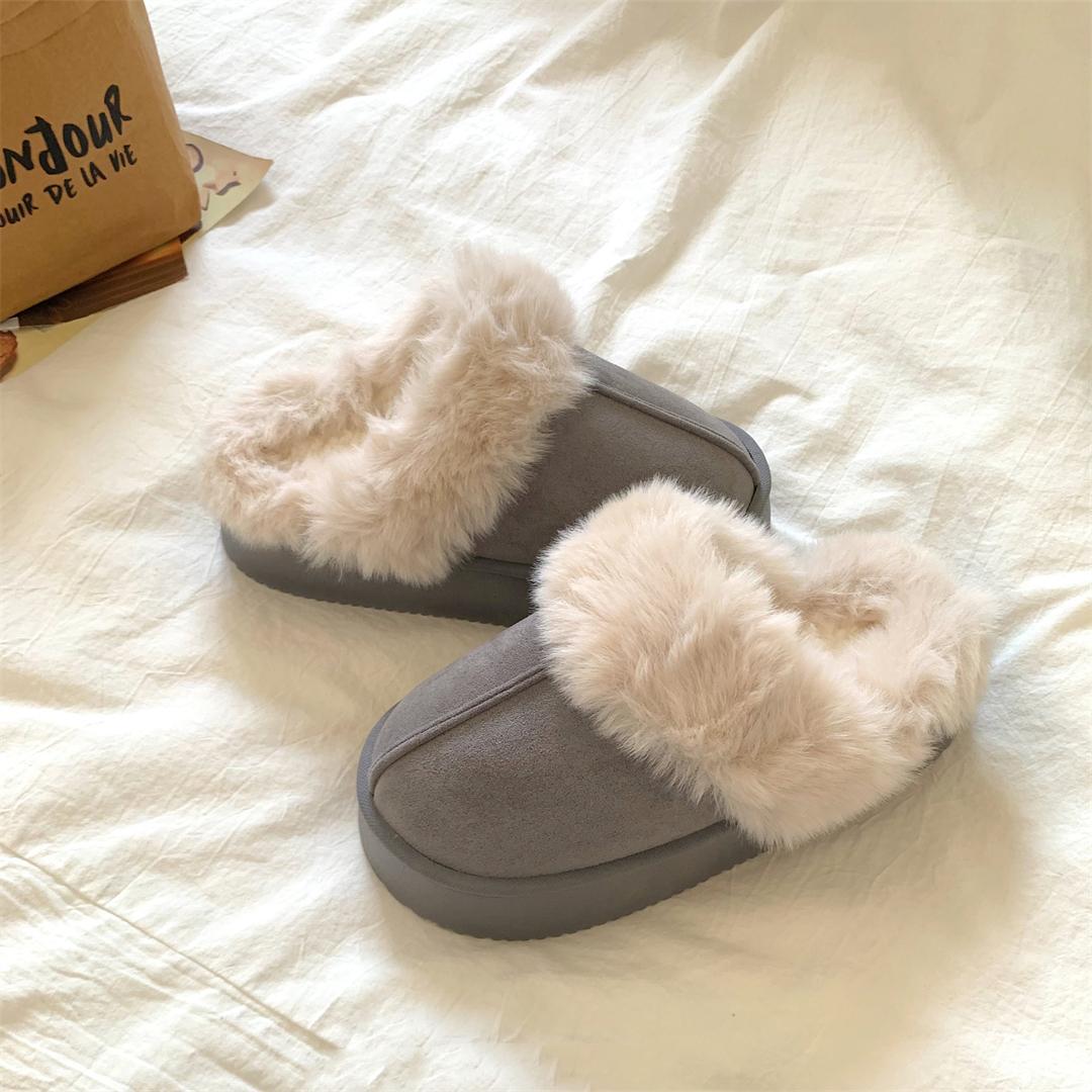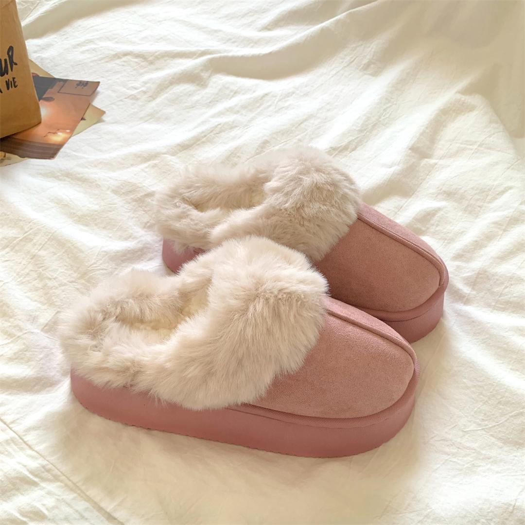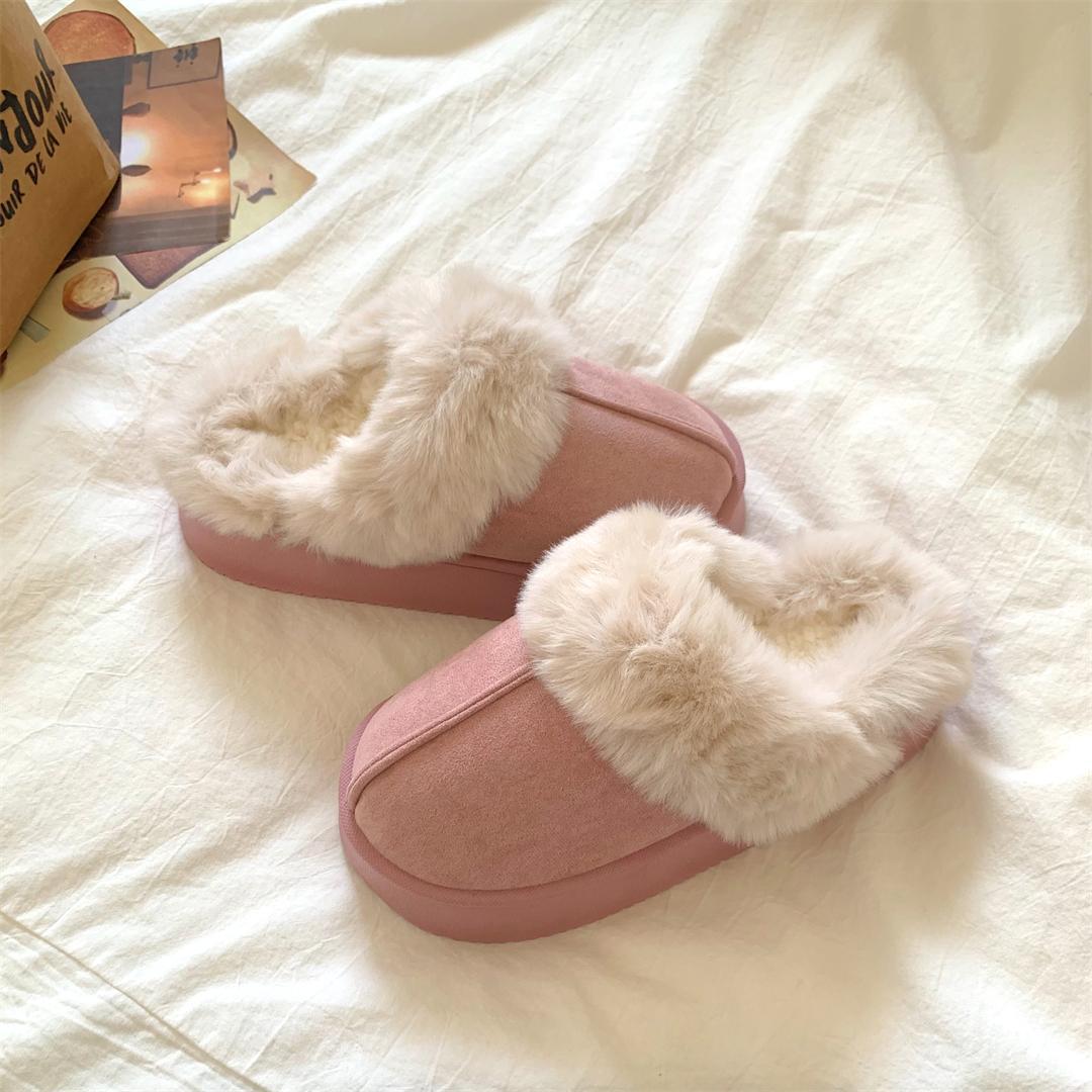 シンプルなファー一体型コットンスリッパ レディース 2025年冬新作 外履き 室内 厚底 スリッポン ファーサンダル レディース
