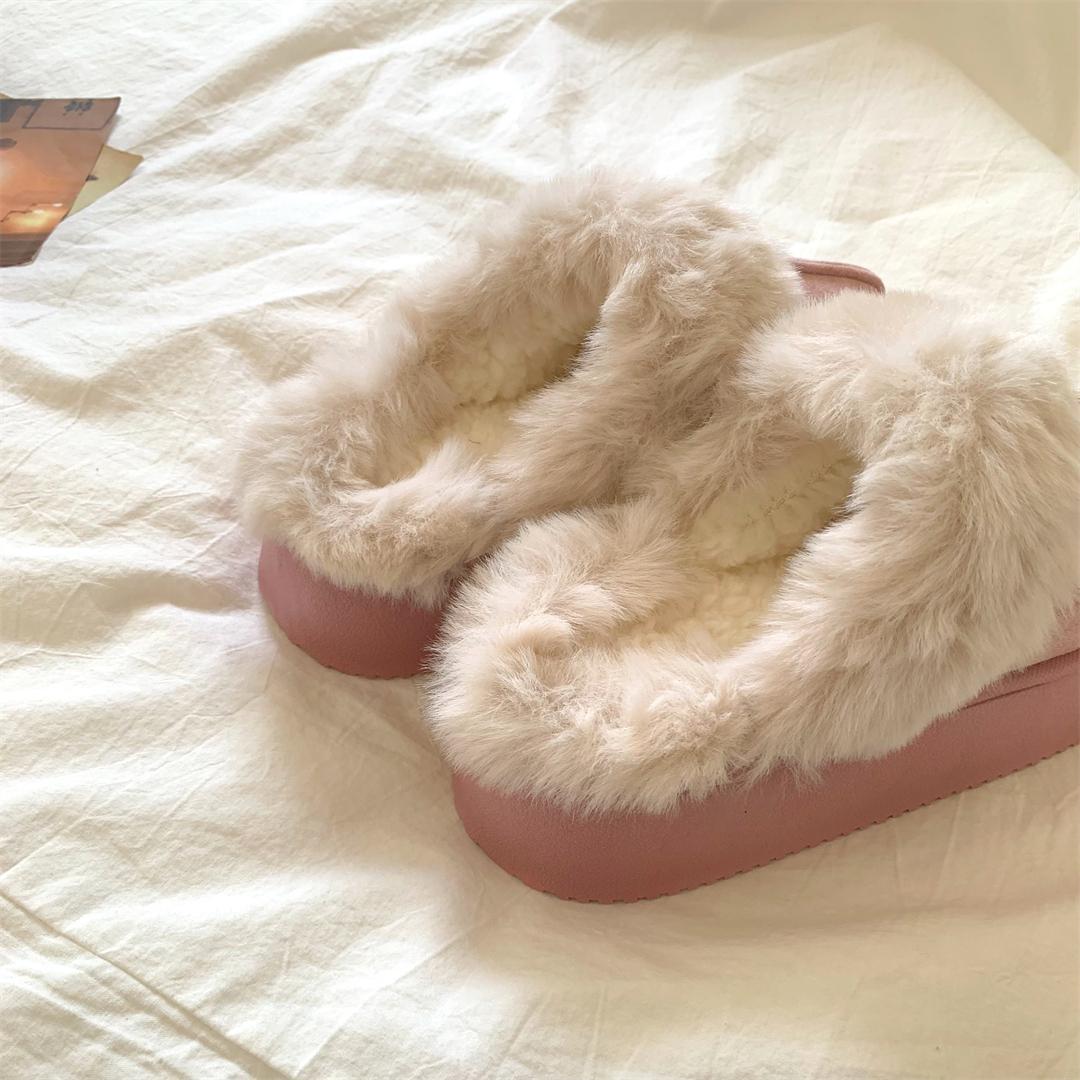 兔毛大棉鞋勃肯鞋厚底加绒棉拖鞋女外穿2025冬季舒适后跟休闲拖鞋