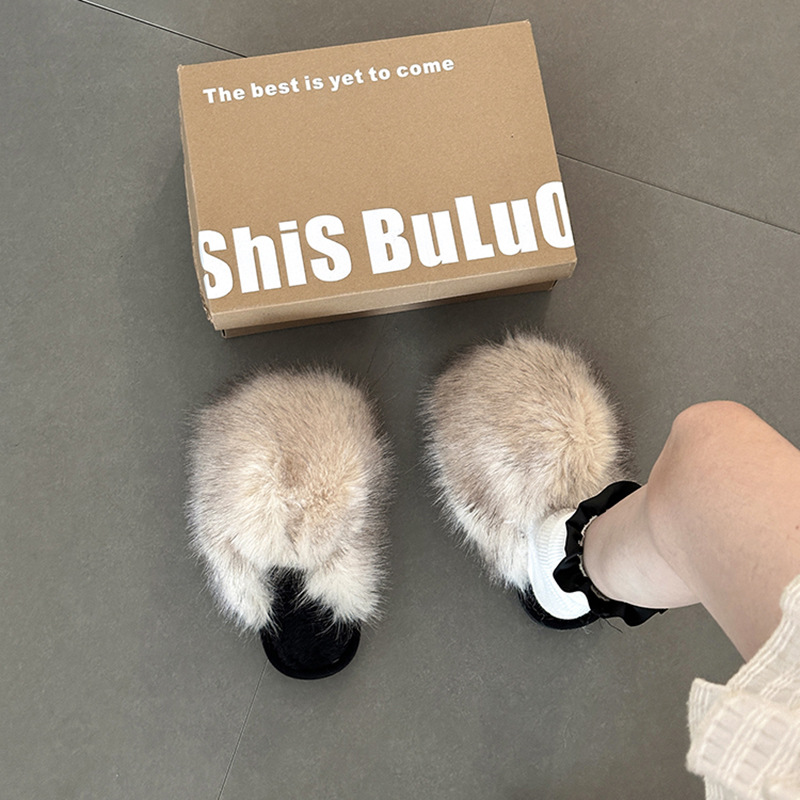 时尚复古百搭毛茸茸包头拖鞋女2025秋冬新款设计感懒人一脚蹬棉鞋