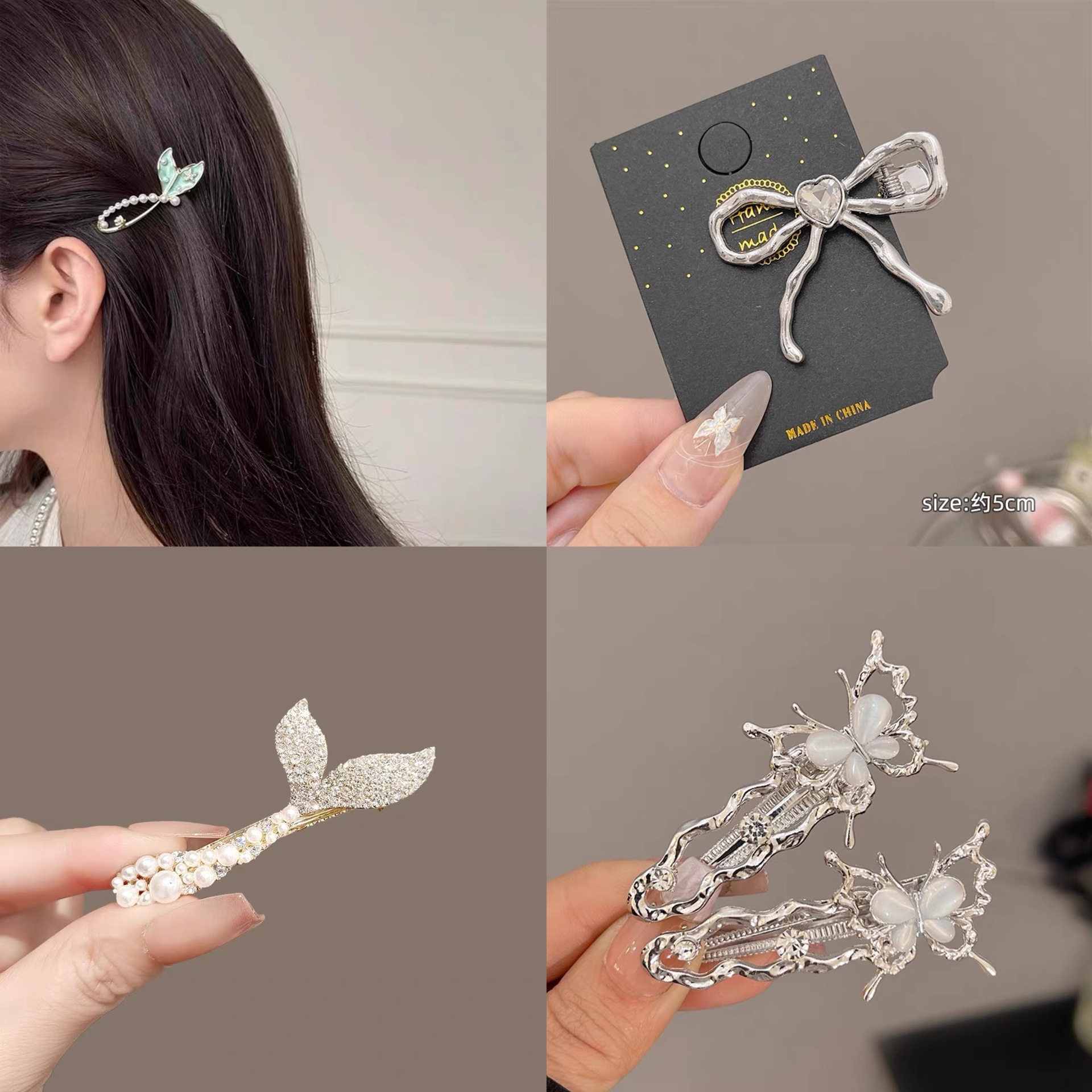 月光猫眼石金属蝶ヘアクリップ女ins清冷感カモ口クリップ額砕髪前髪クリップ頭飾り