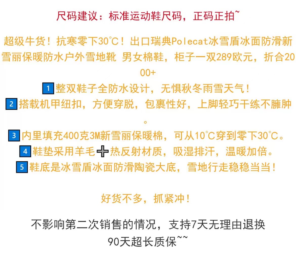 スウェーデンのイタチpolecat氷上滑り止め対外貿易防水防風保温雪地靴東北綿靴男女