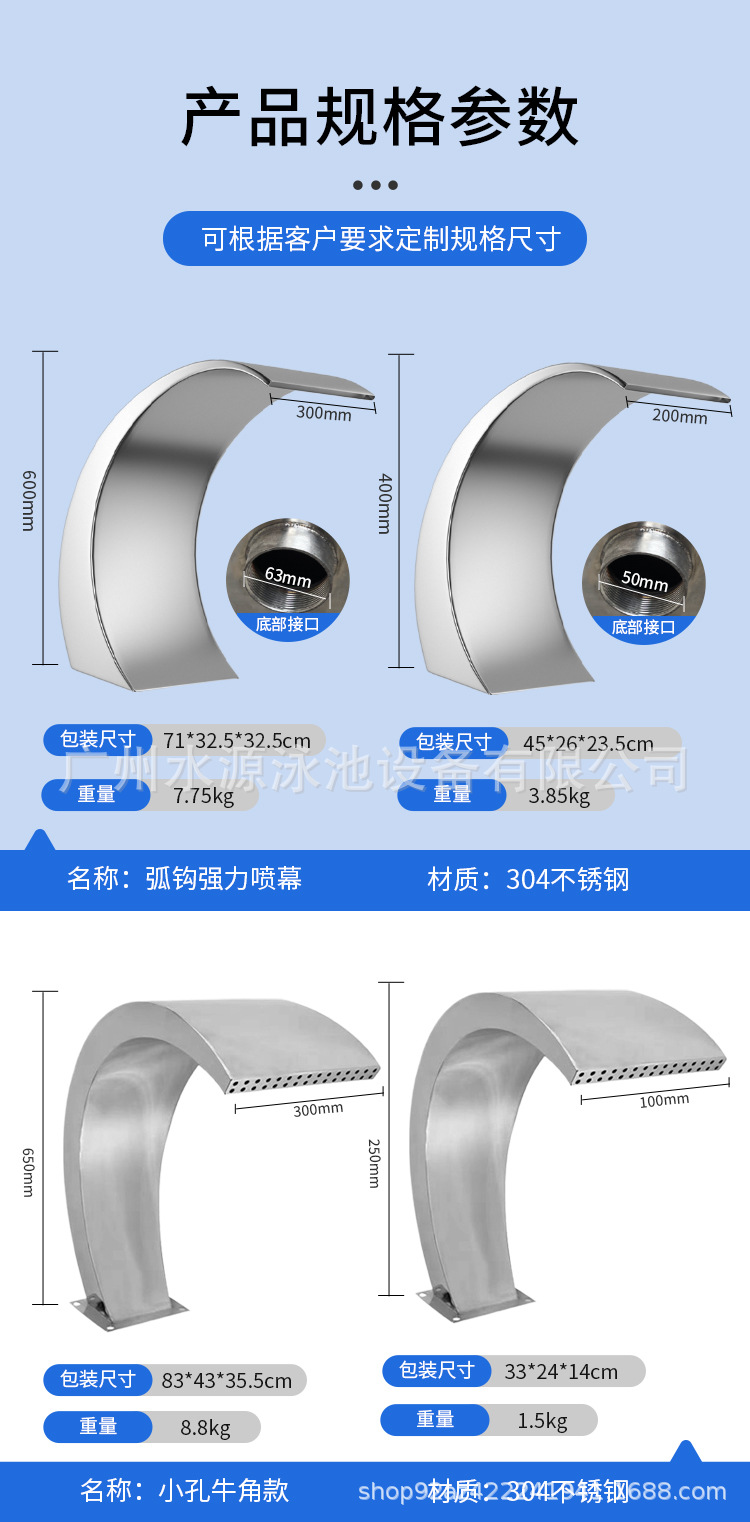 スイミングプールアークフックノズルステンレス鋼出口 304 滝ウォーターカーテン SPA インパクトスラップバススパ機器