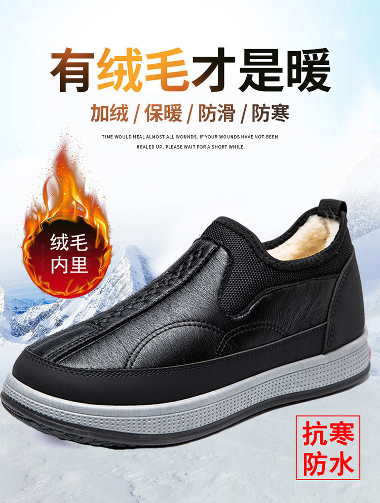 厳選冬の古い北京布靴の男性綿靴とベルベットの厚い中高年防水滑り止めウールの高い綿靴
