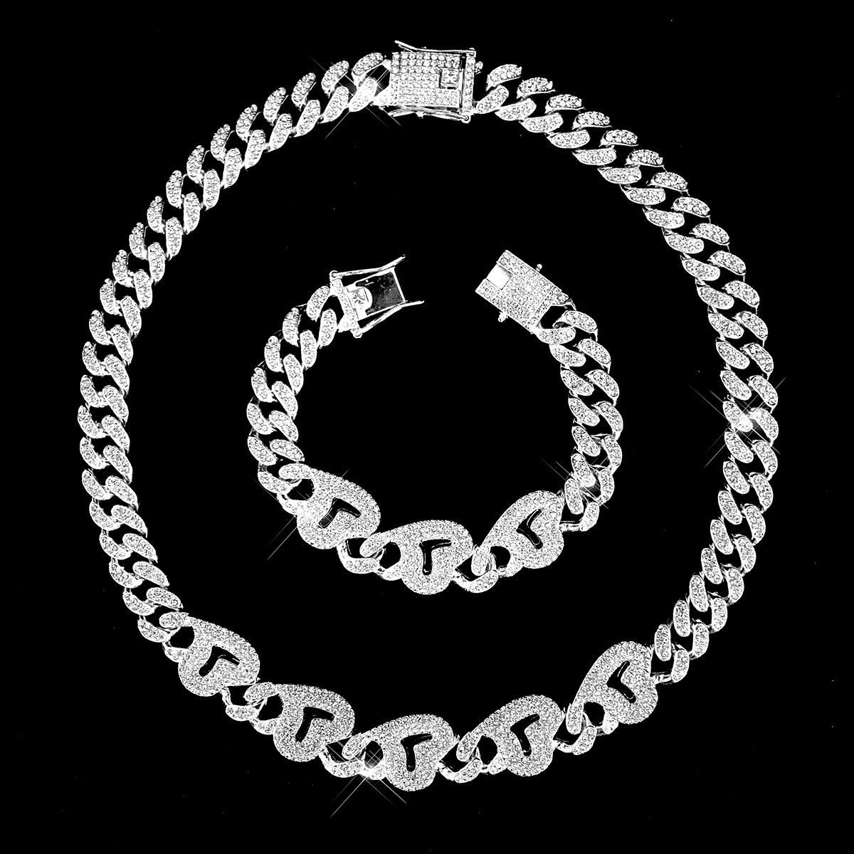 12mmキューバチェーンクロスボーダー軽豪華ファッション百合合金ドリル男女同金スキューバネックレス源工場