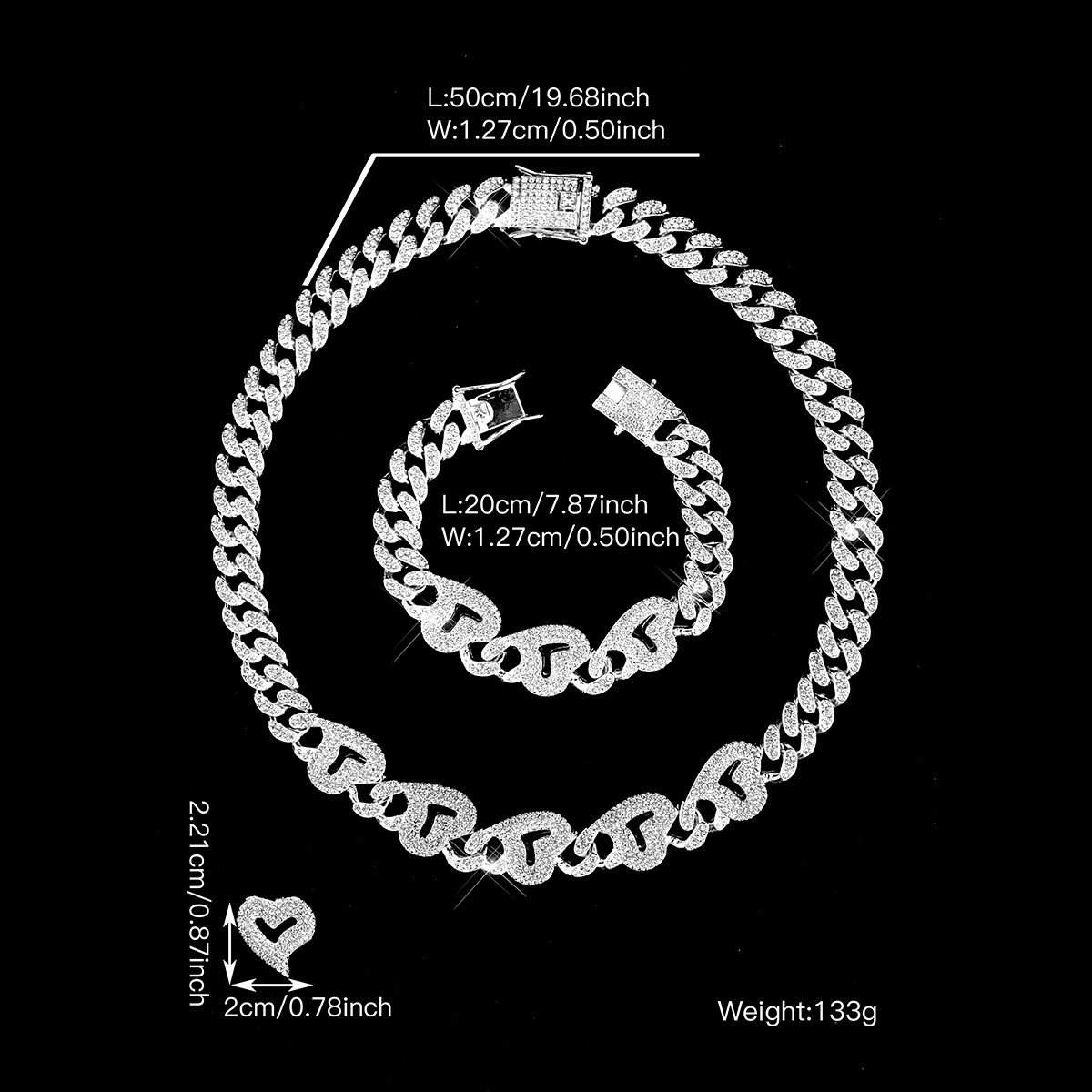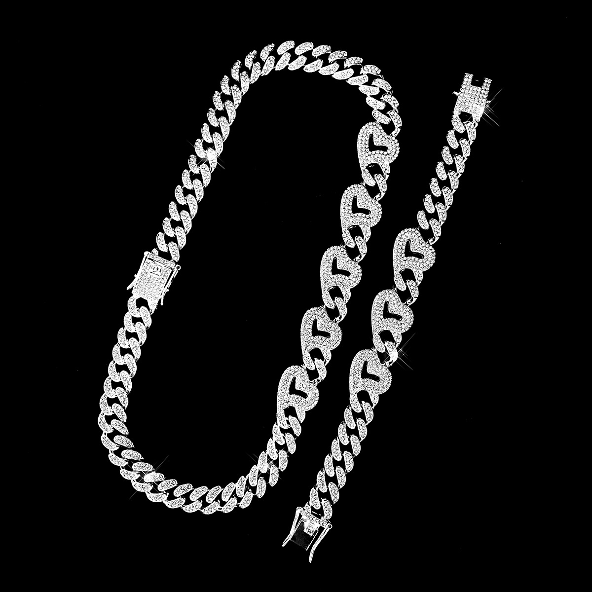 属性2 13mm クラシック フル ダイヤモンド キューバ チェーン