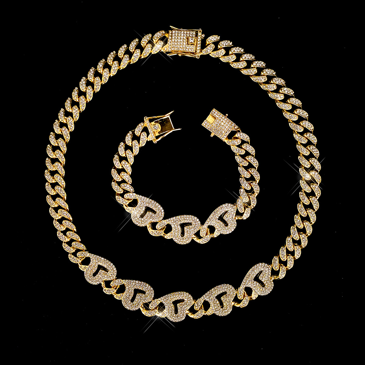 国境を越えたヒップホップ風アクセサリー欧米ファッション合金満ドリル男女共通蝶ペンダントキューバチェーン