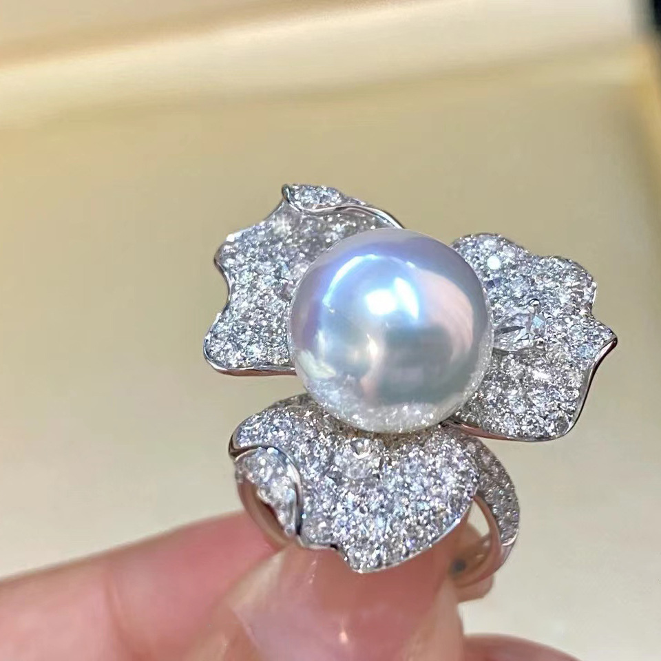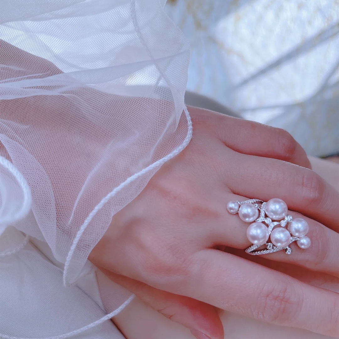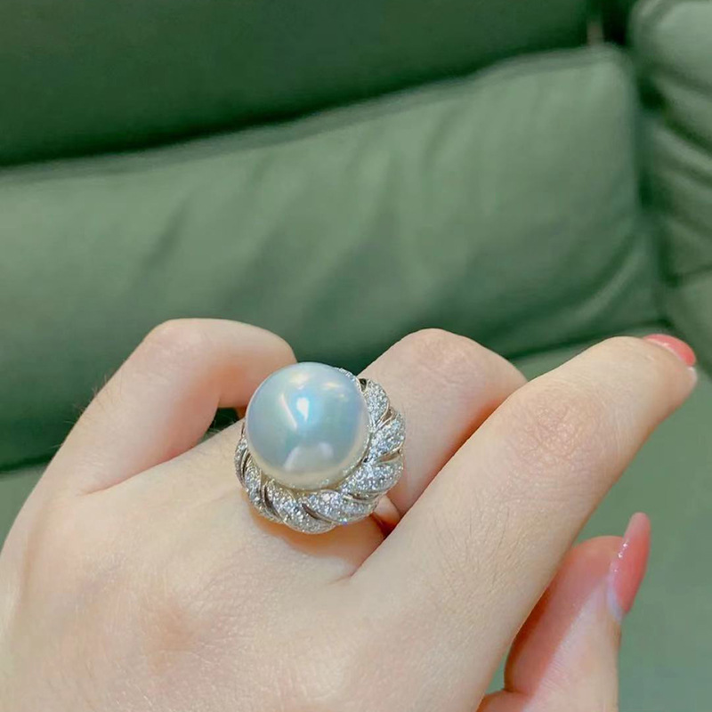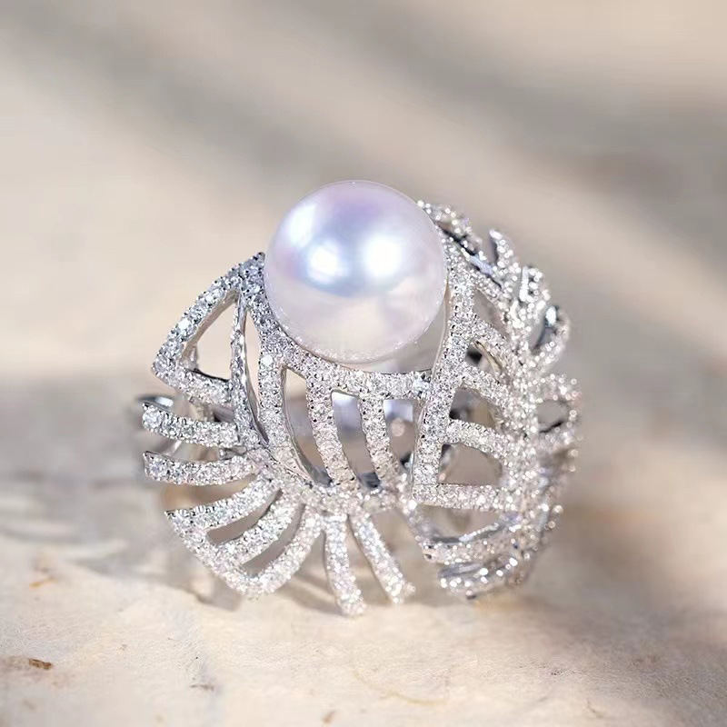 指輪の女性ファッションの個性はダイヤモンドの真珠の指輪を巻いて口を開けます。