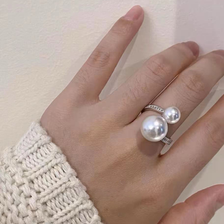大衆アクセサリー高級感真珠指輪女性開口ins軽贅沢韓国アクセサリー指輪復古気質